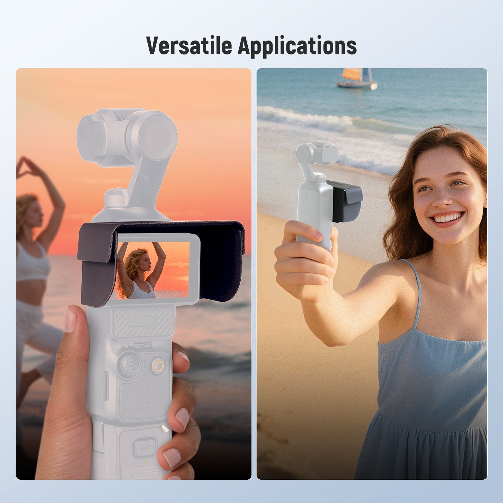- Pare-soleil pour poche 3 : exclusivement compatible avec DJI OMSO Pocket 3, le pare-soleil réduit efficacement l'éblouissement pour améliorer la visibilité dans des conditions lumineuses tout en assurant un accès libre à l'écran et aucune interférence avec la fonctionnalité de l'écran tactile. Idéal comme équipement de caméra d'action pour le créateur de contenu et les accessoires de photographie indispensables pour l'influenceur