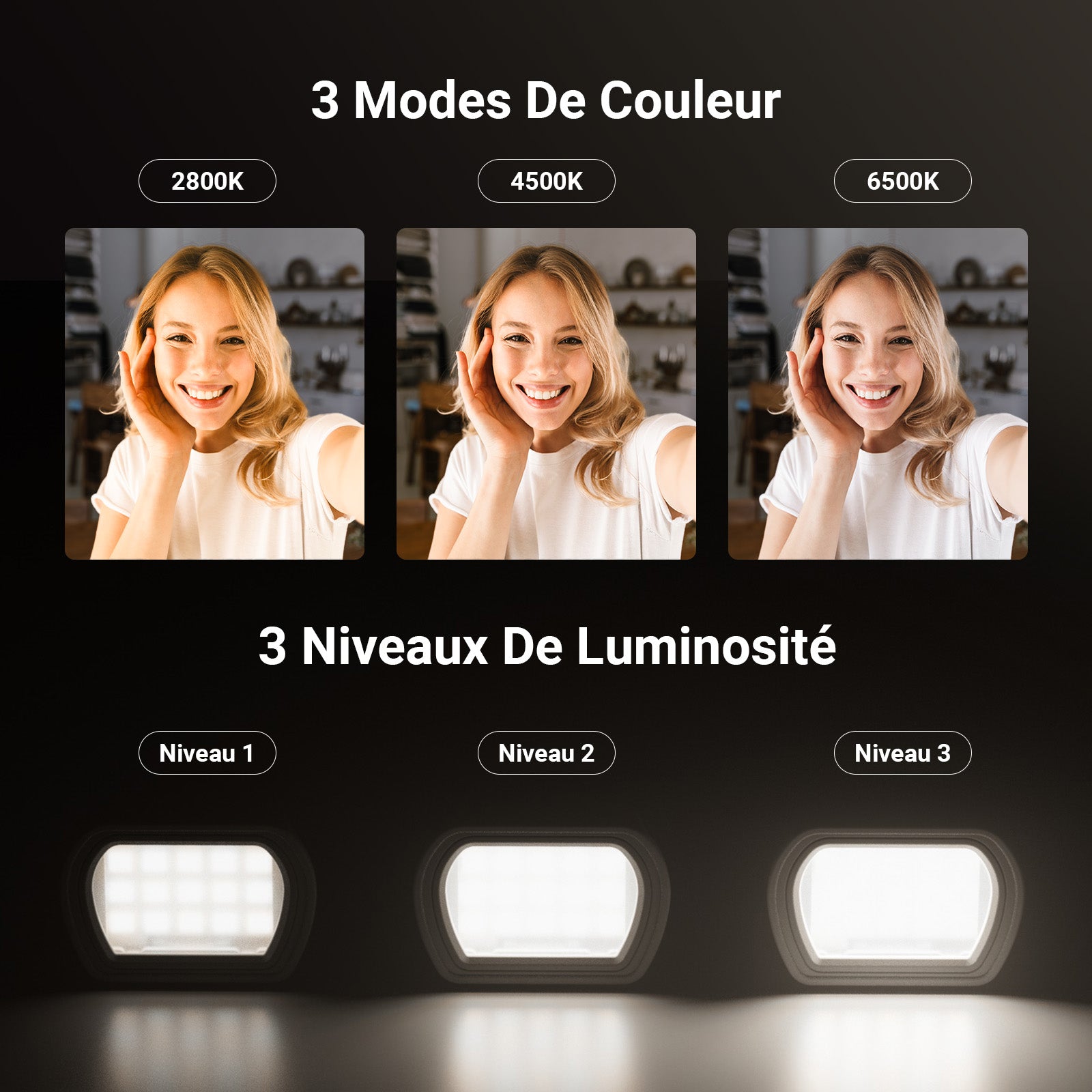 - 【Installation magnétique rapide】Avec 2 supports de montage magnétiques améliorés, cette lampe photo s'enclenche rapidement sur les côtés ou sur le dessus de la poche 3 pour la photographie et les vidéos pleines d'action en tant que créateur de contenu essentiel, les maquilleurs et les influenceurs doivent avoir un équipement d'éclairage