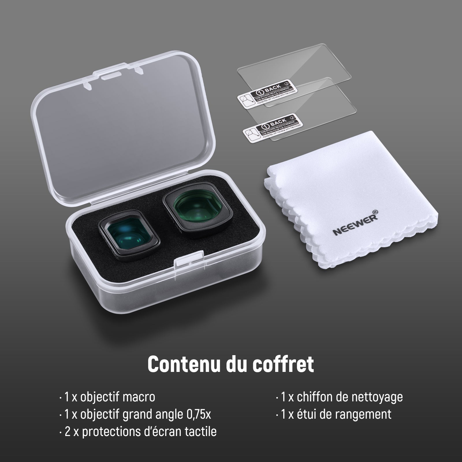 NEEWER FL-B34 Kit d’Objectifs 0,75X Grand Angle & 2X Macro pour DJI Osmo Pocket 3