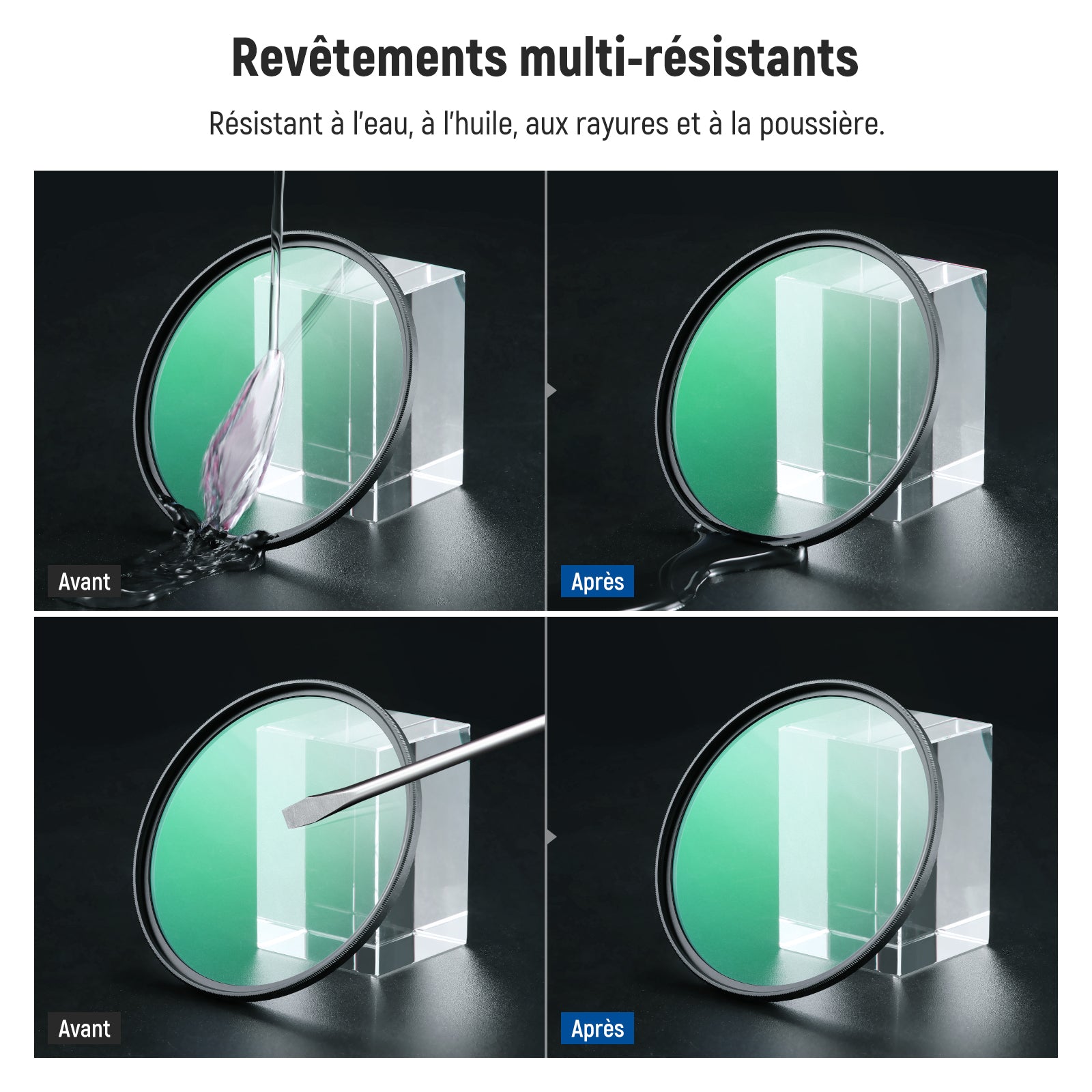 • 【30 couches de revêtements nanométriques】 30 couches de revêtements nanométriques sur les deux côtés des filtres réduisent la réflexion provenant de toutes les directions et du filtre lui-même et sont résistants à l'eau, à l'huile, aux rayures et aux empreintes digitales