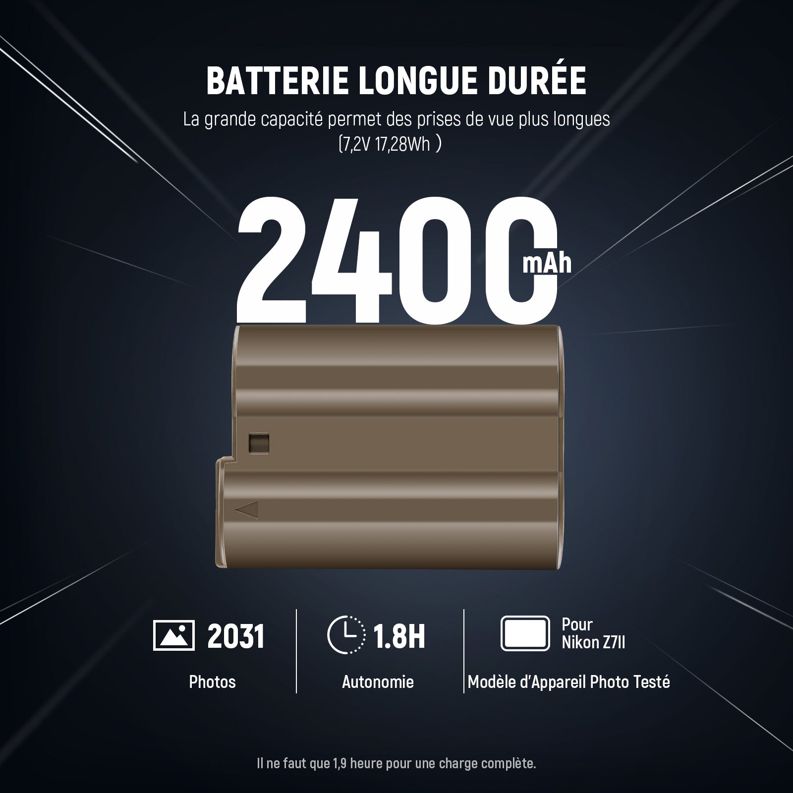 NEEWER 2400mAh EN-EL15c batterie de remplacement pour appareil photo Nikon Zf Z8 Z7 II Z6 II Z5