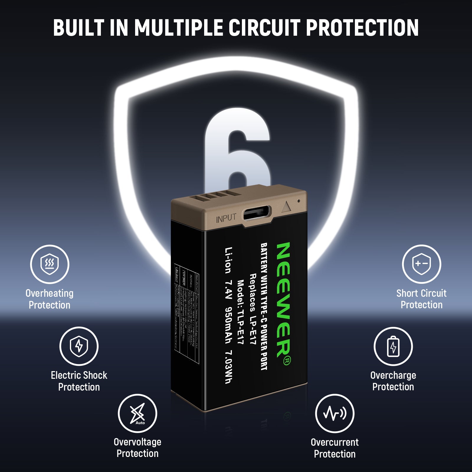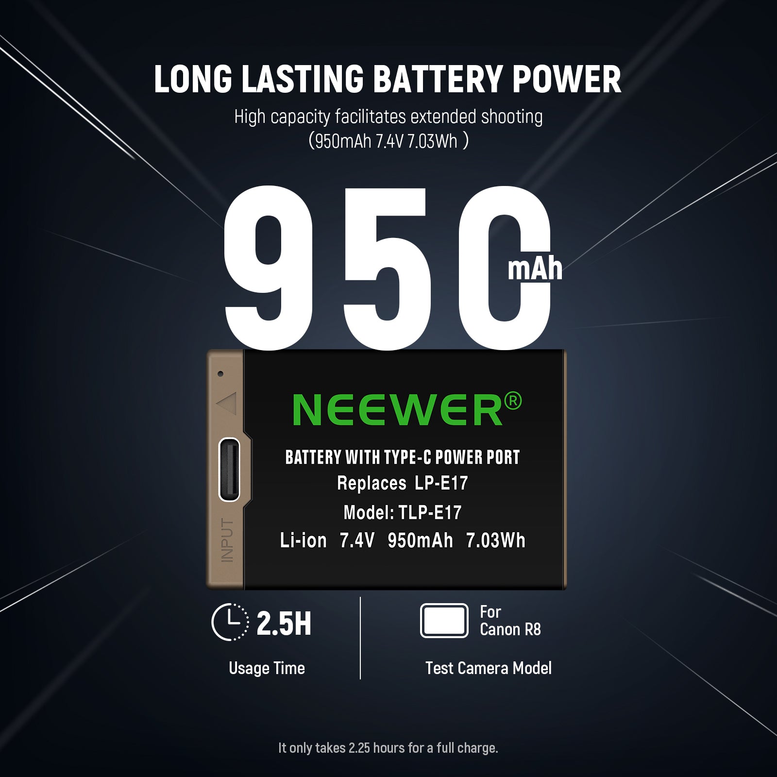 NEEWER 950mAh LP-E17 Batterie de remplacement pour appareil photo Canon