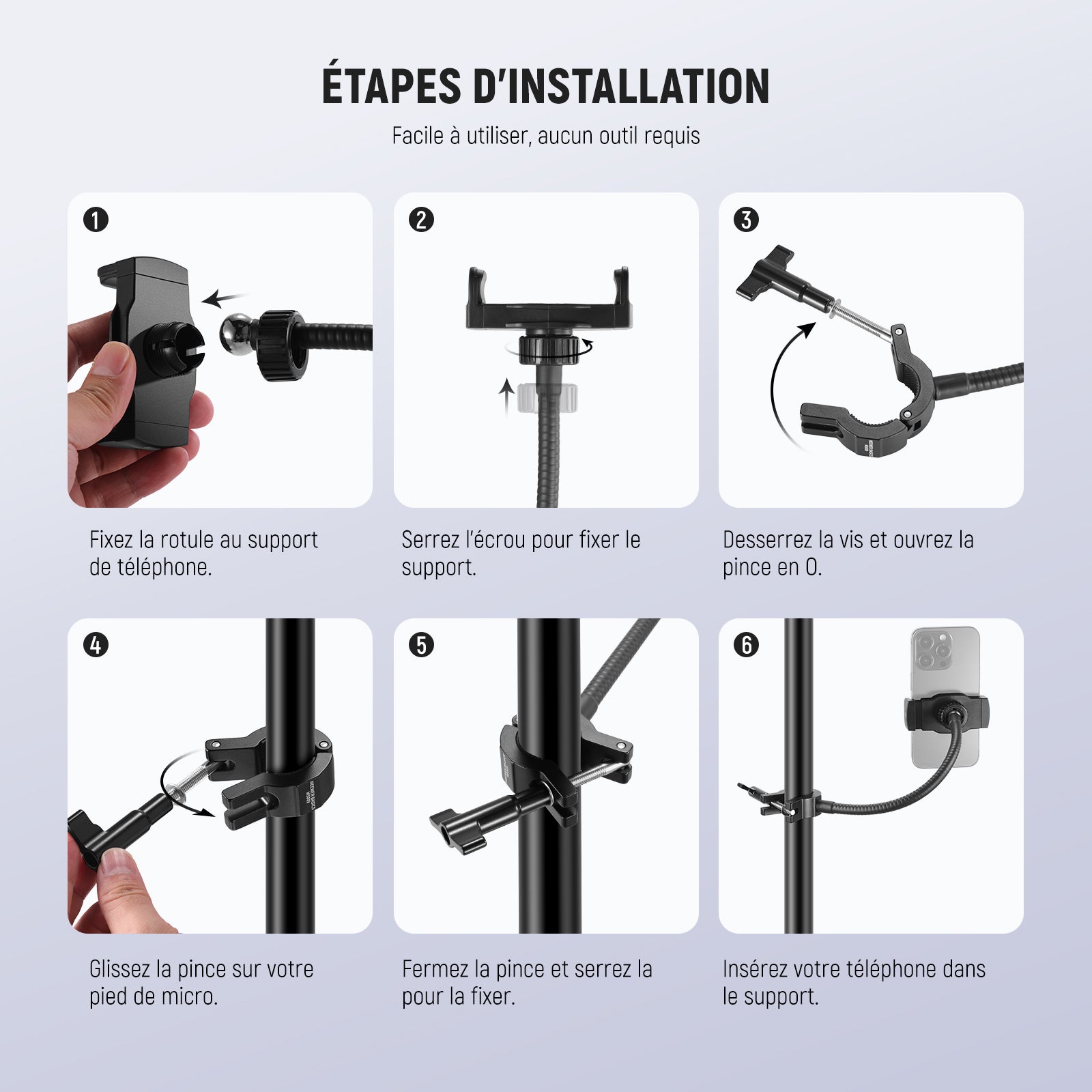 - Type d’article : Support de téléphone pour pied de micro