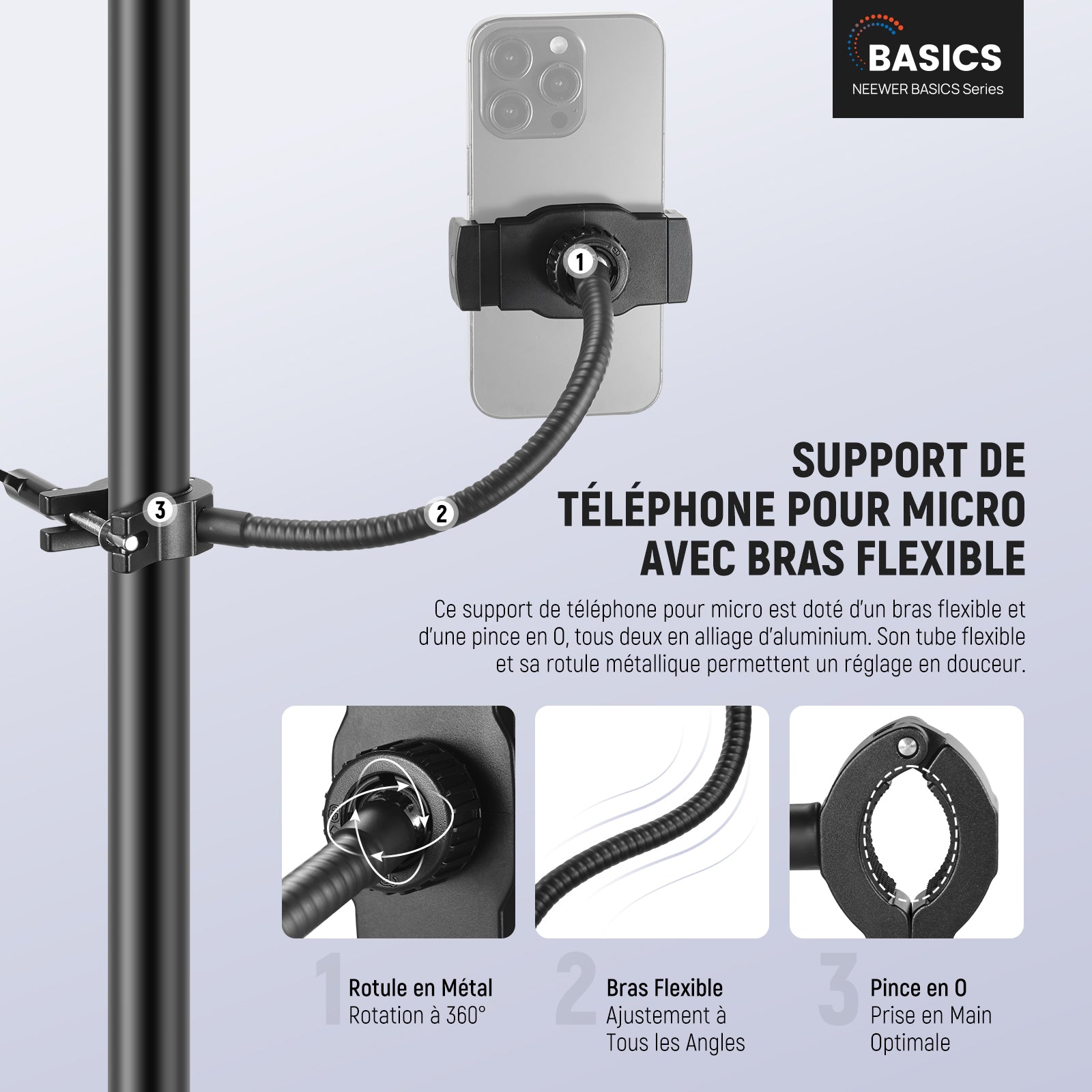 NEEWER BASICS MS009 Support de Téléphone avec bras flexible et Microphone