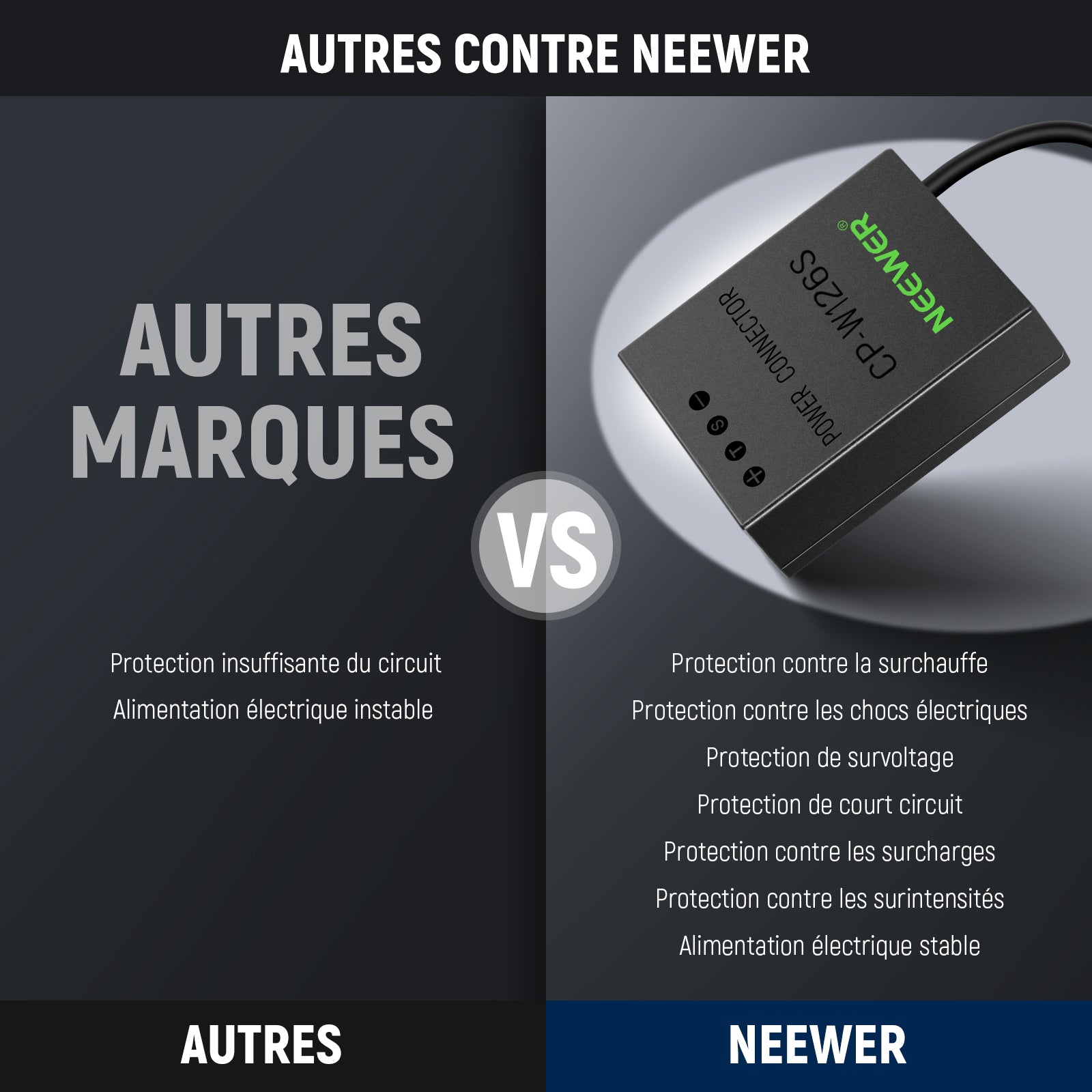 - Caractéristiques principales : Alimentation stable et continue
