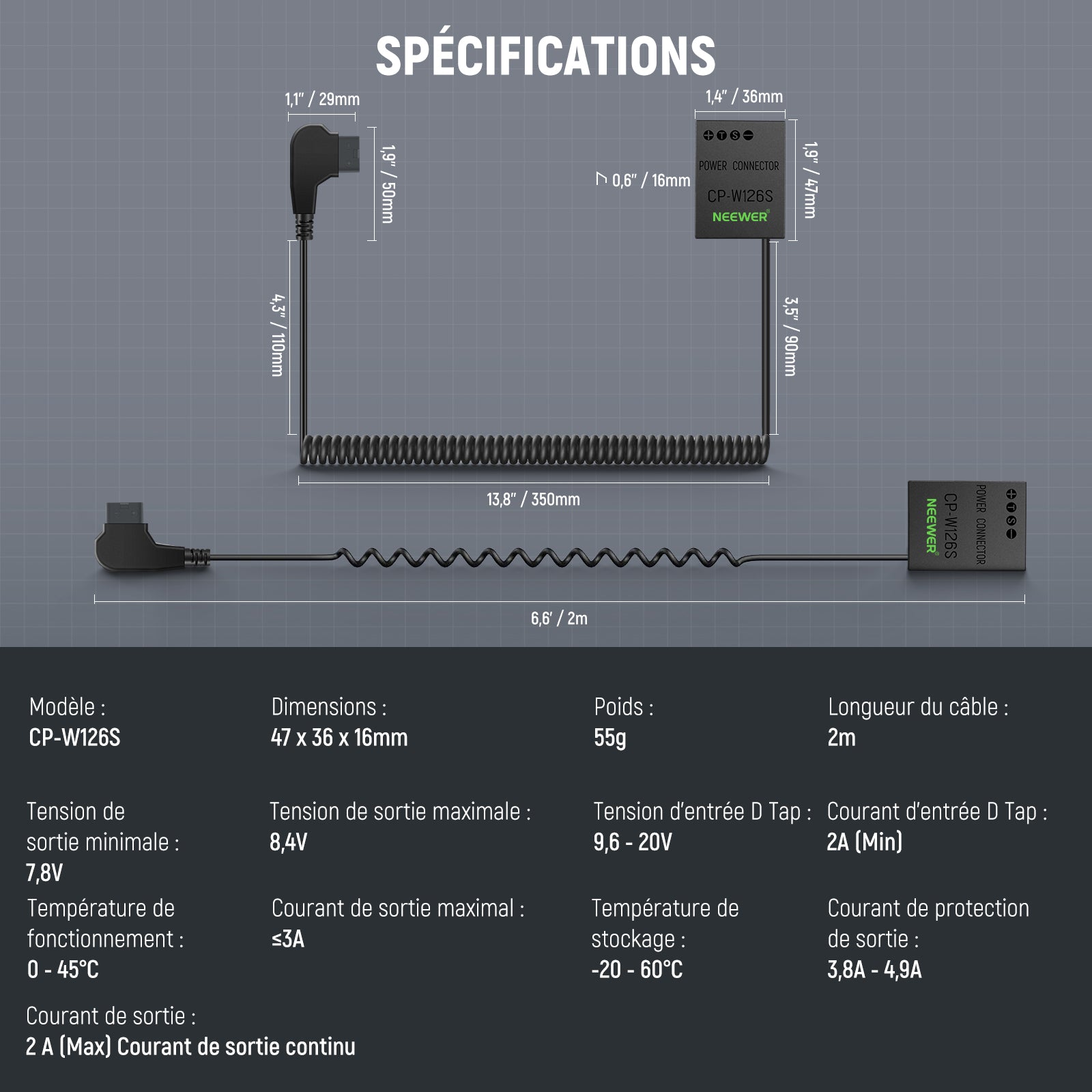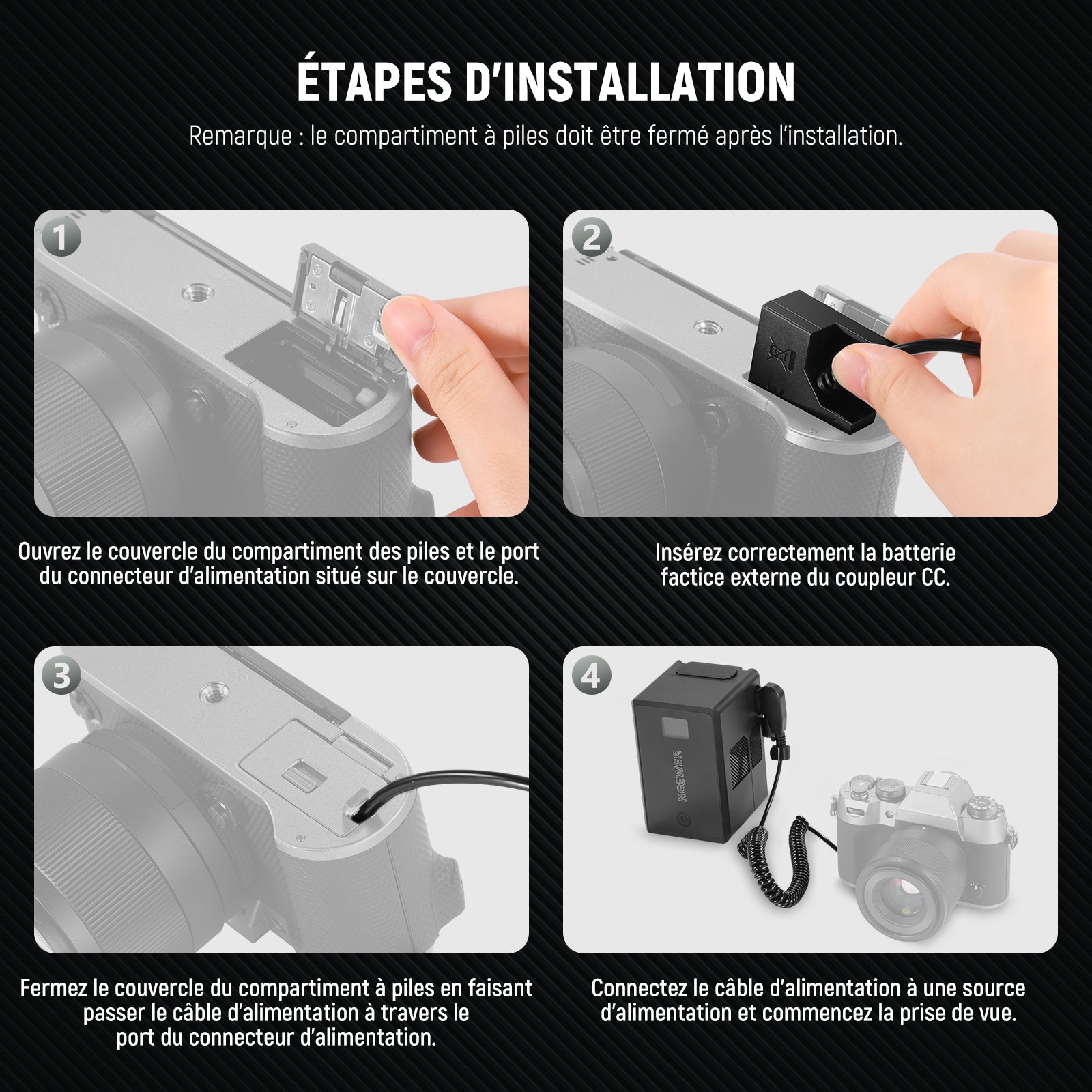 NEEWER CP-W126S D Tap a NP-W126S Batterie fictive avec câble pour Batterie Montage V