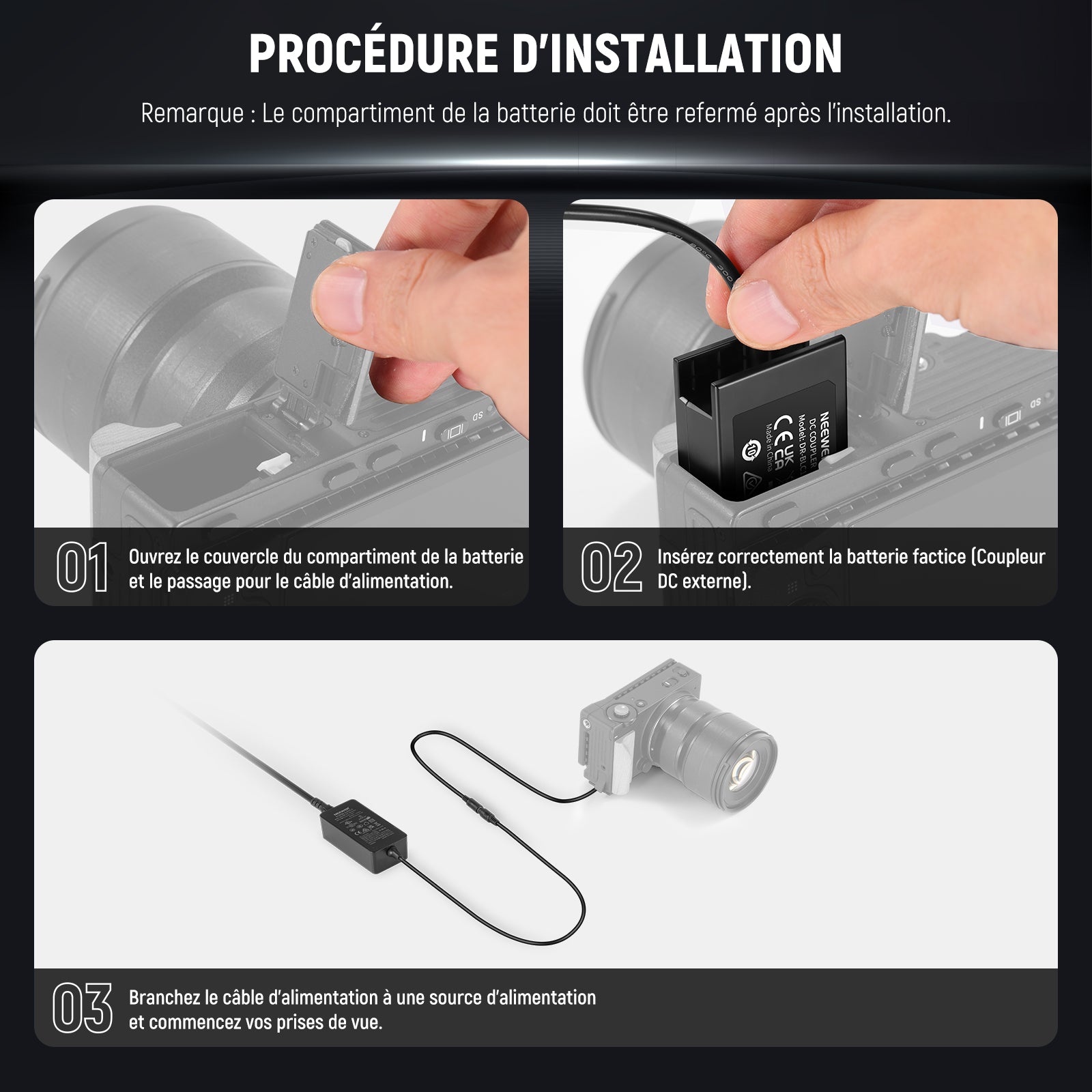 NEEWER DMW-BLC12 Kit de Coupleur Batterie Factice