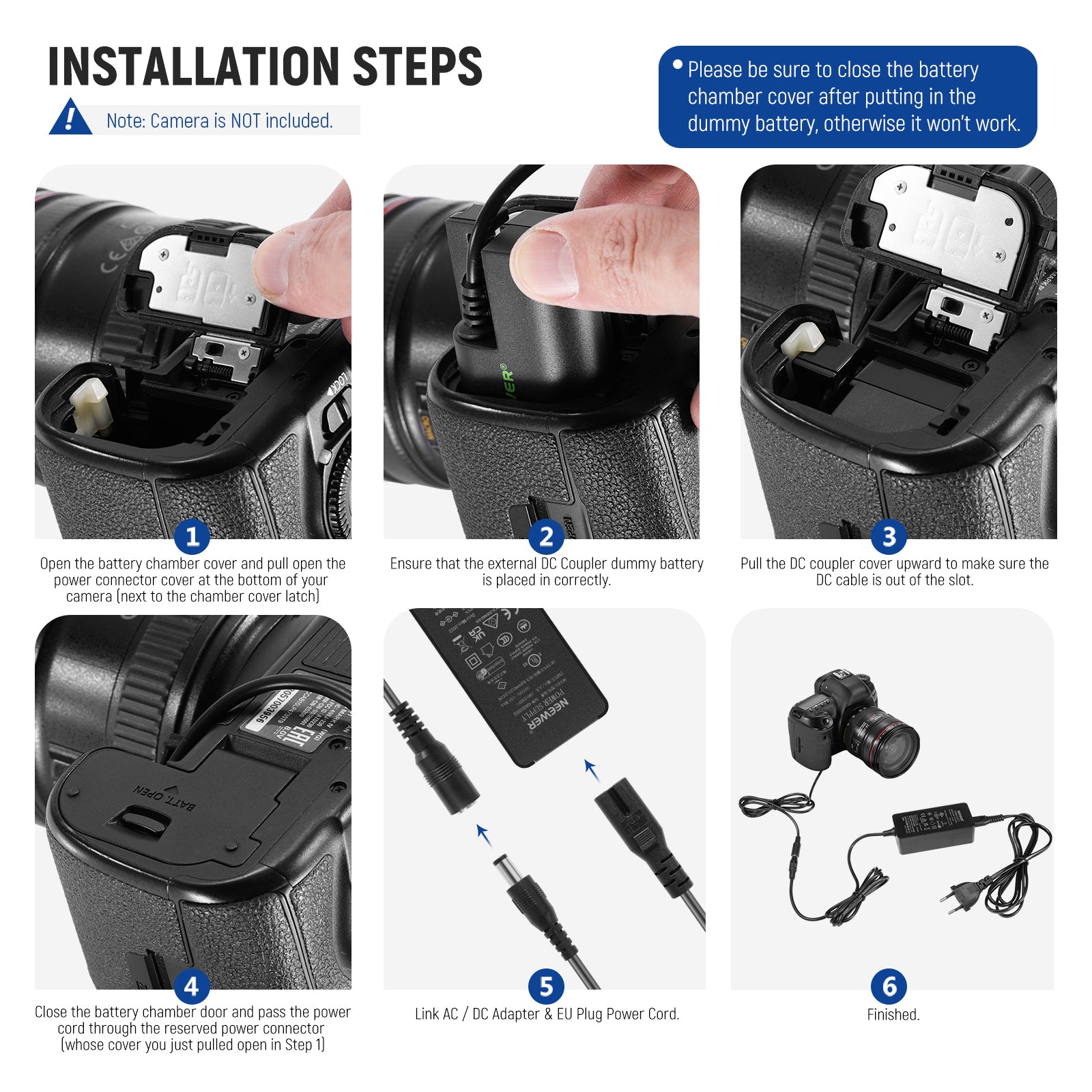 • 【Obtenez une alimentation continue】 Ce kit de batterie factice peut alimenter en continu votre appareil photo Canon qui utilise des batteries LP-E6, LP-E6N ou LP-E6NH et élimine le besoin de remplacer la batterie, parfait pour la photographie en studio et en intérieur, le vlogging, la diffusion en direct, et le cinéma