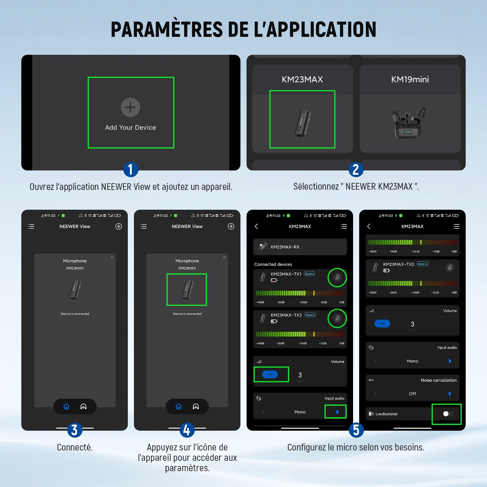 - 【Fréquence d'échantillonnage 48 kHz/24 bits】 En utilisant l'application NEEWER View ou en vous connectant à un ordinateur, vous pouvez choisir la fréquence d'échantillonnage 48 kHz/24 bits pour une reproduction vocale détaillée et naturelle.