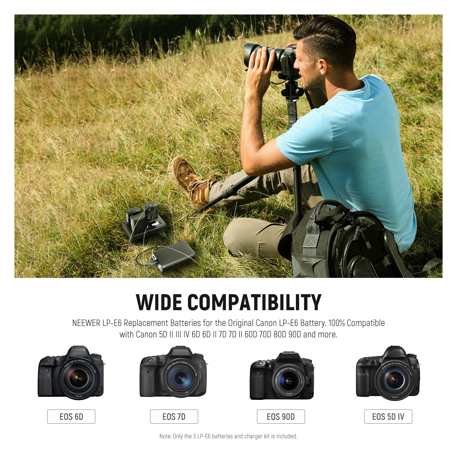 NEEWER LP-E6 Ensemble de batterie et chargeur de rechange,Lot de 3
