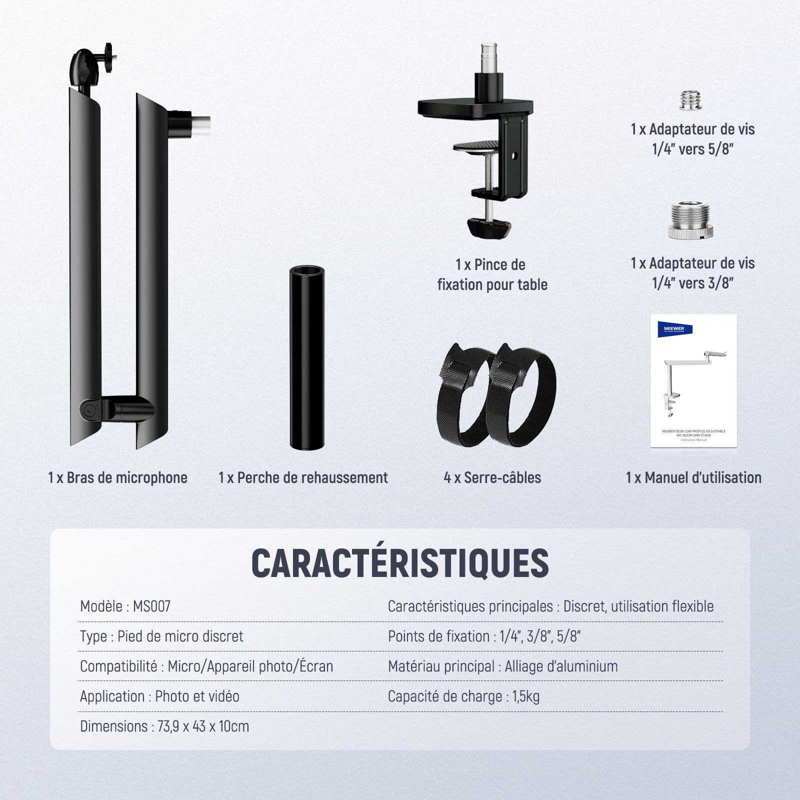 - Type d’article : Support de microphone à profil bas