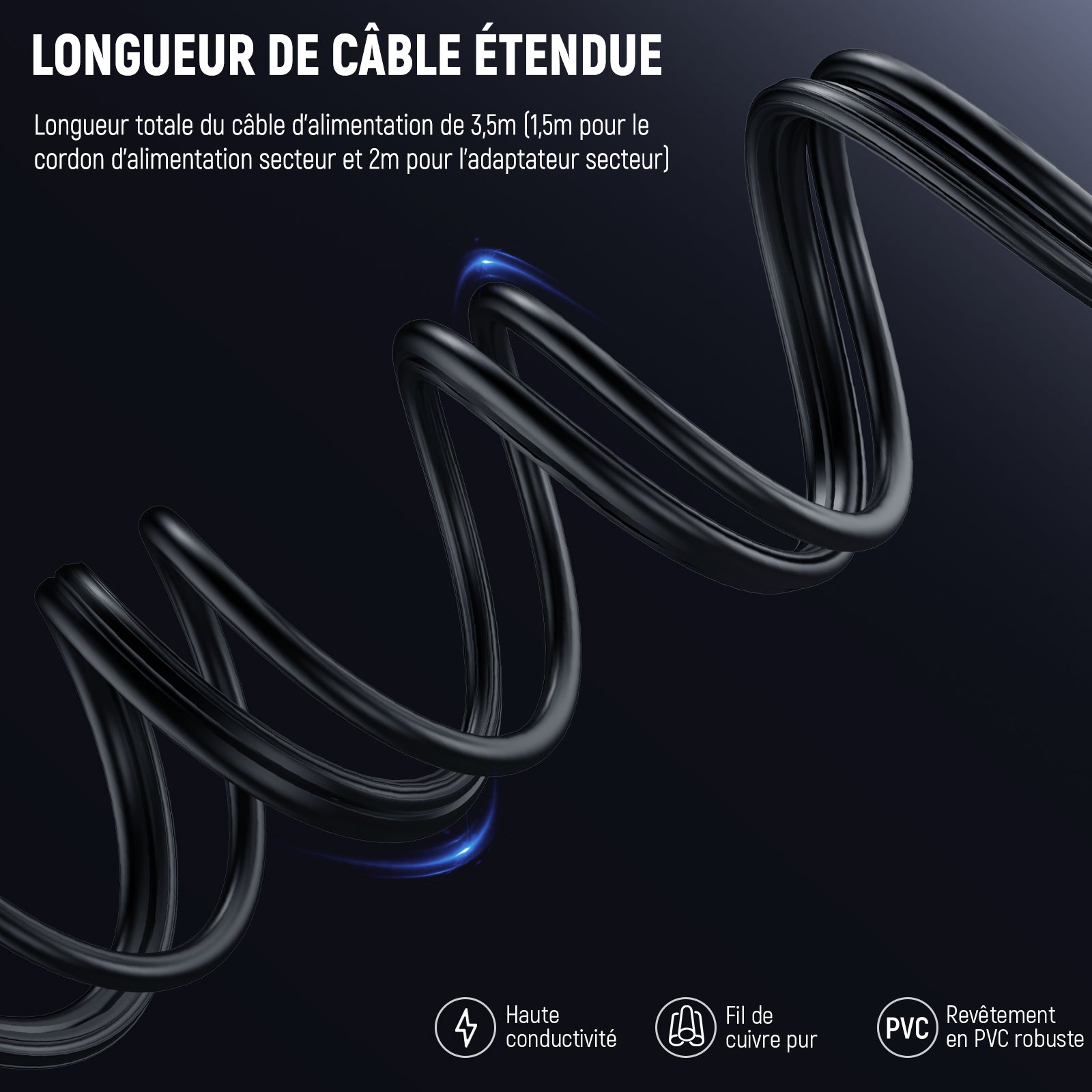 - 【Longueur de câble étendue】 La longue longueur du câble d'alimentation permet un positionnement flexible dans votre studio