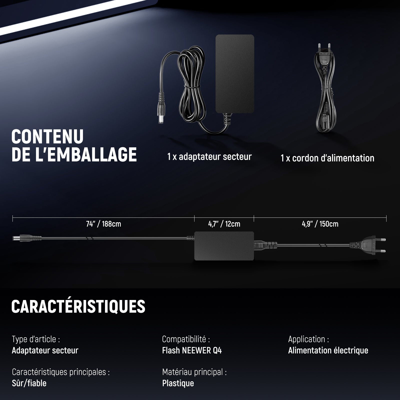 NEEWER NC-Q4 Q4 Q4 Adaptateur Secteur et Câble d'alimentatio