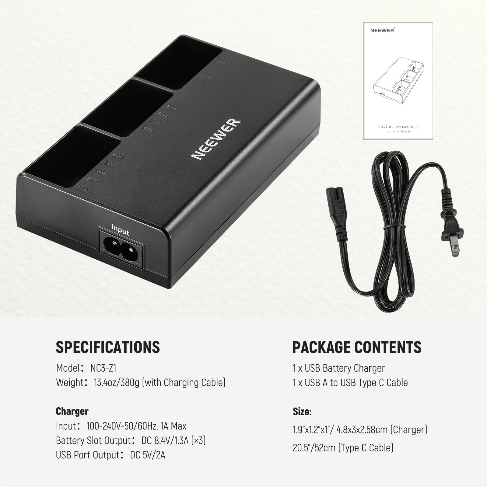 NEEWER NC3-Z1 Triple Slot Battery Charger Kit for Z2 Z1 Z760 Z880