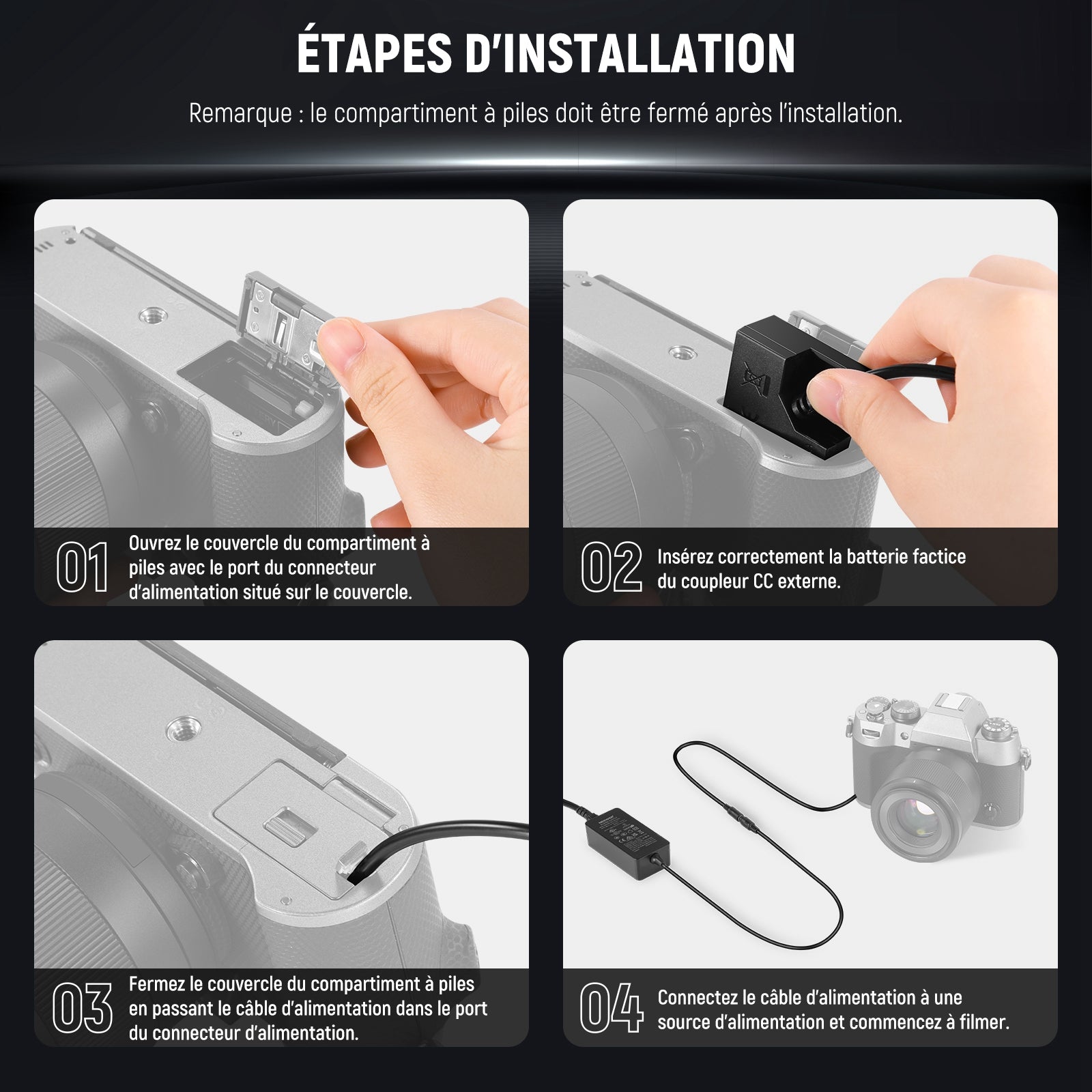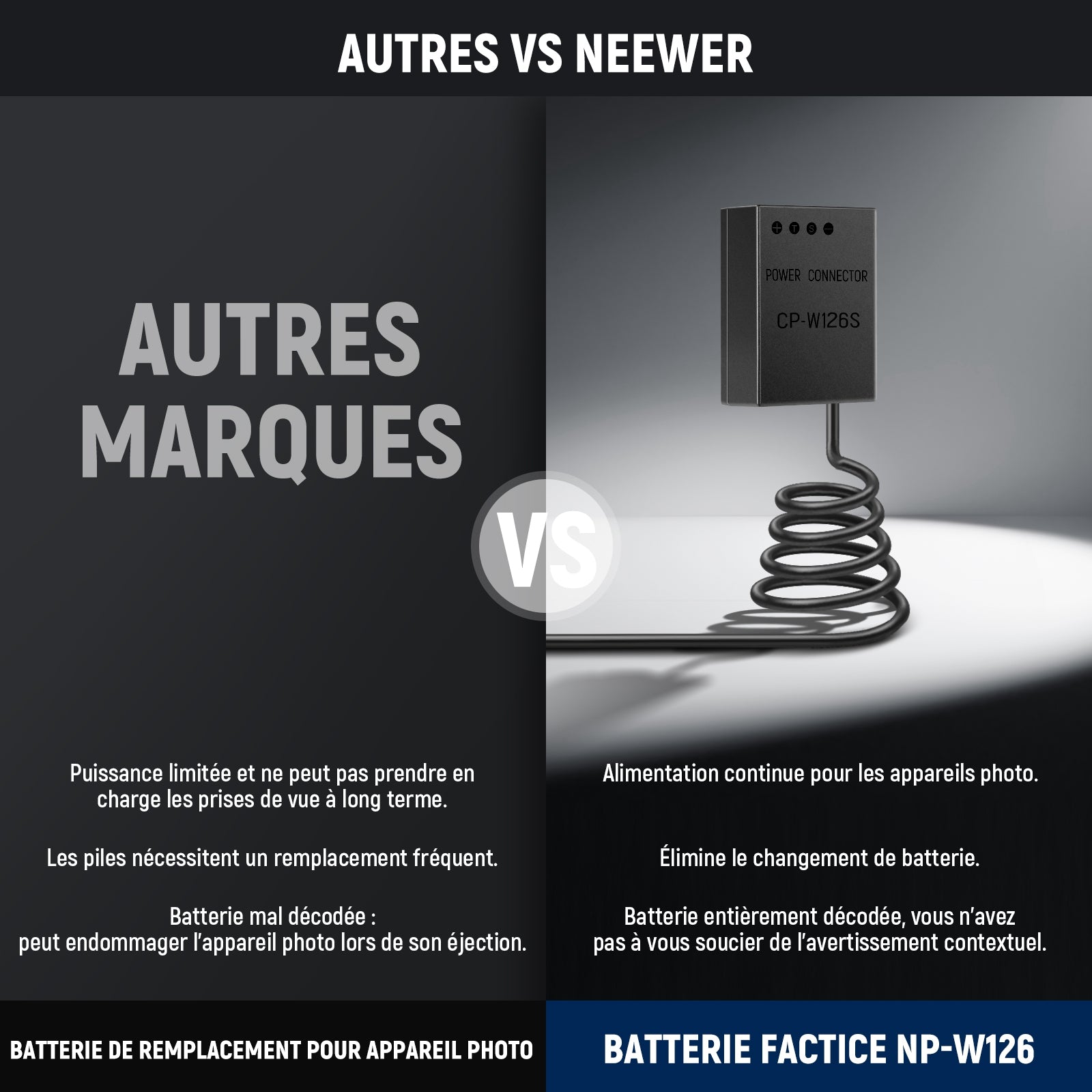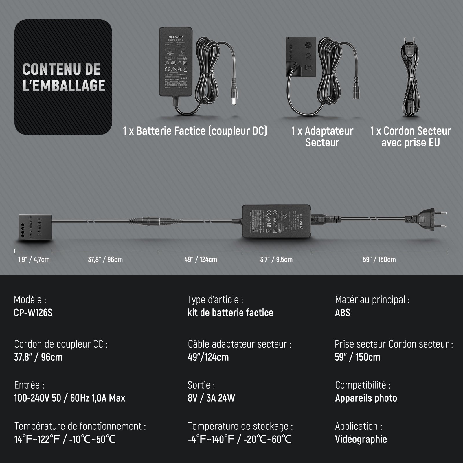 NEEWER NP-W126/NP-W126S Kit de Chargeur Batterie Factice Rechange