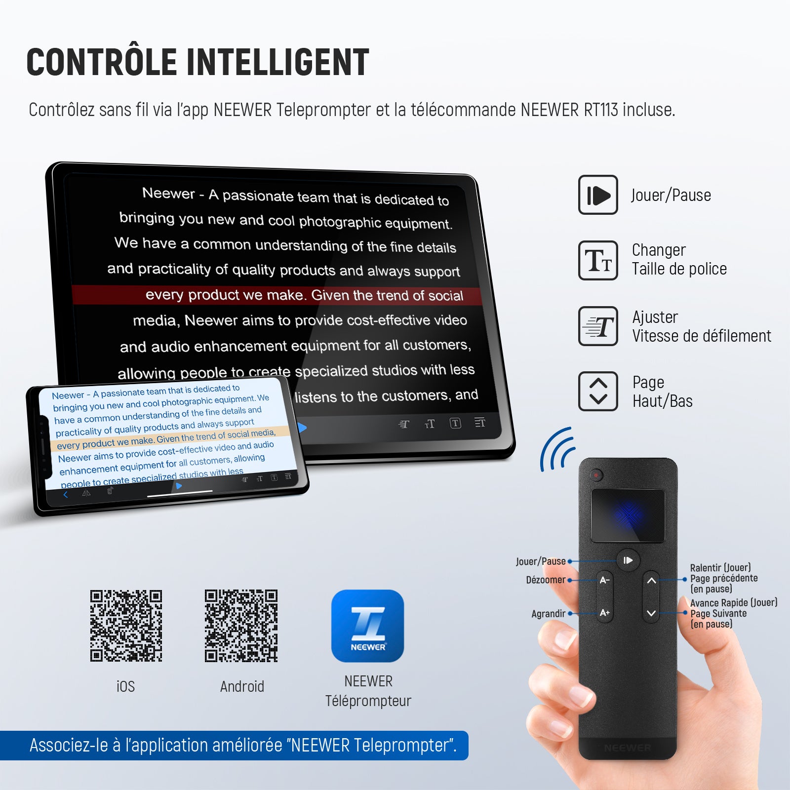 NEEWER X17 II Téléprompteur avec télécommande RT113 et Contrôle via Application