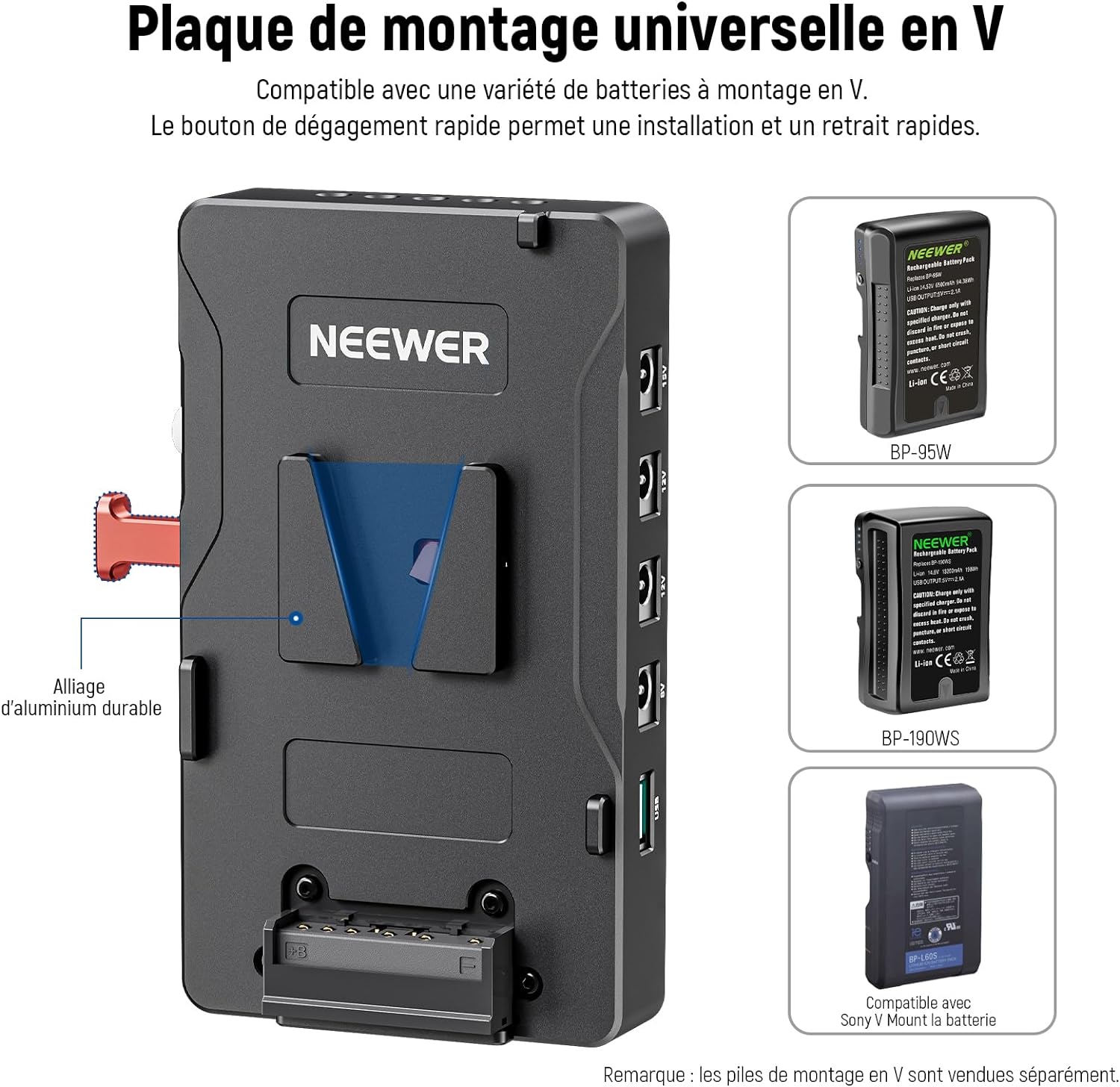 • Compatibilité : Compatible avec les batteries Sony à montage en V (BP-V47, BP-V95, BP-95W) et autres batteries à montage en V