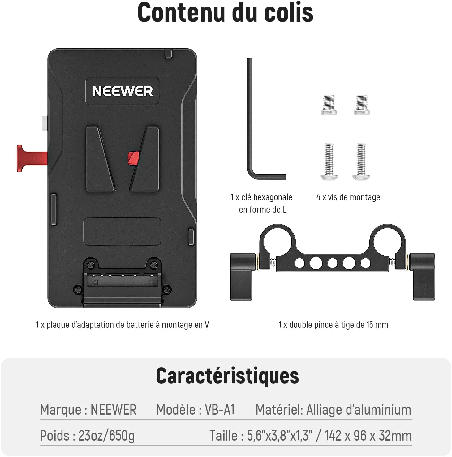 NEEWER VB-A1 Adaptateur de plaque de batterie à montage en V avec pince à tige de 15 mm