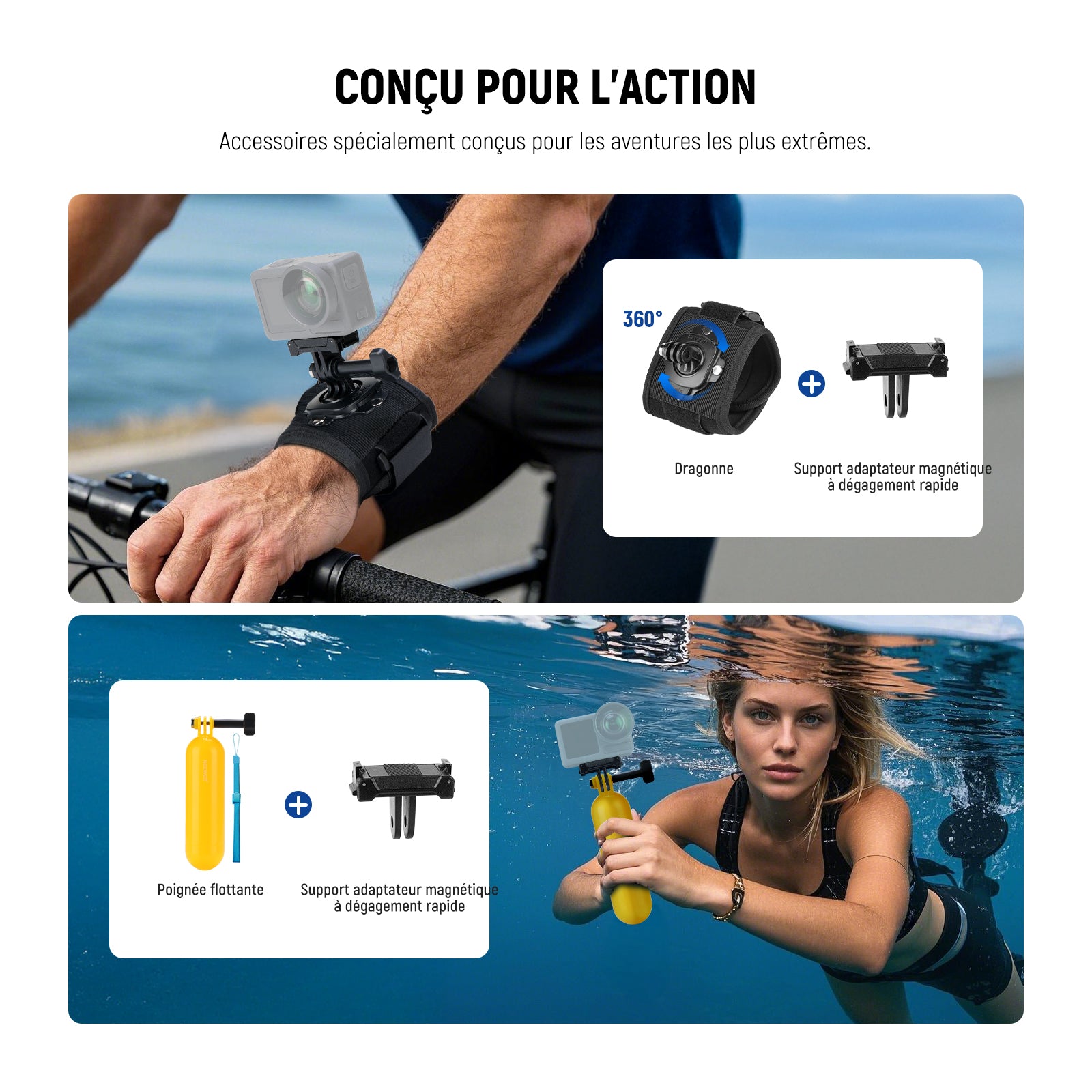 NEEWER GP-23 Kit de montage de caméra 6 en 1 pour GoPro DJI Insta360