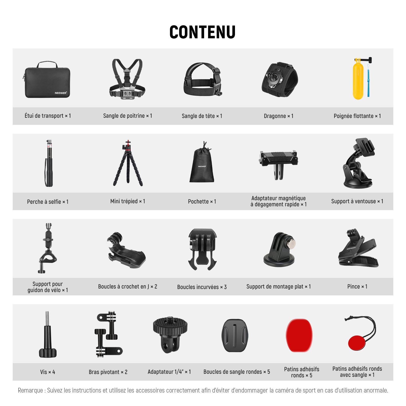 NEEWER Kit d'accessoires pour caméra d'action 50 en 1