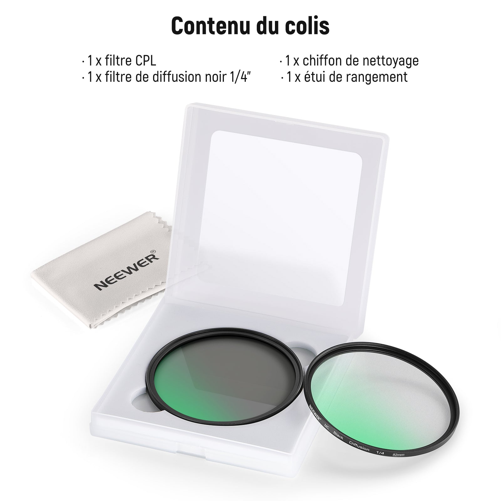NEEWER Lot de 2 filtres CPL + Diffusion de Brume Noire 1/4 Filtre