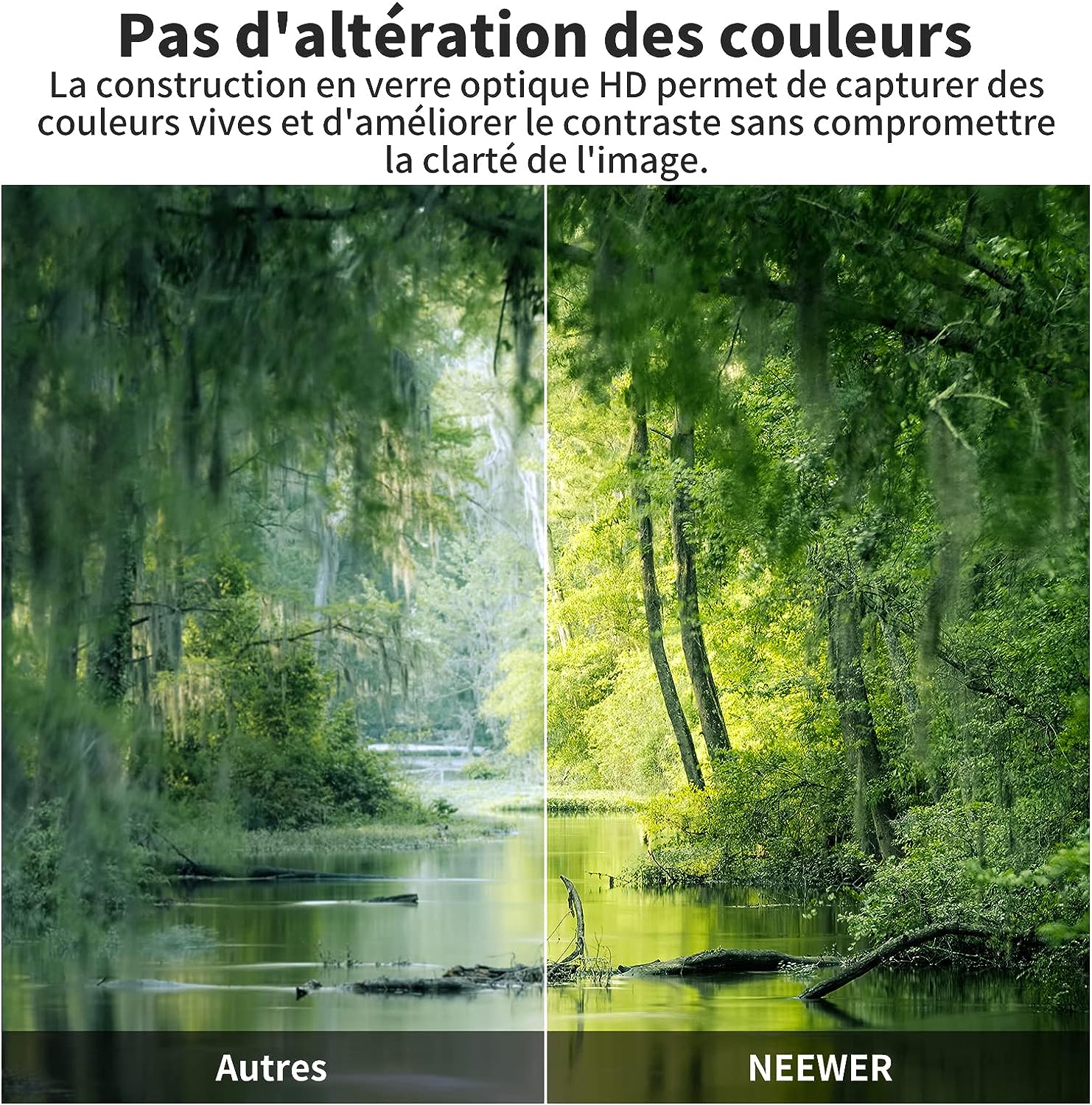 • 【Filtre UV de protection】Ce filtre UV réduit la brume et minimise les rayons ultraviolets (UV) tout en améliorant le contraste. Parfait pour capturer des photos de haute altitude et de neige sans la dominante bleutée. Gardez ce filtre sur votre objectif pour le protéger de la poussière, des rayures et des chocs
