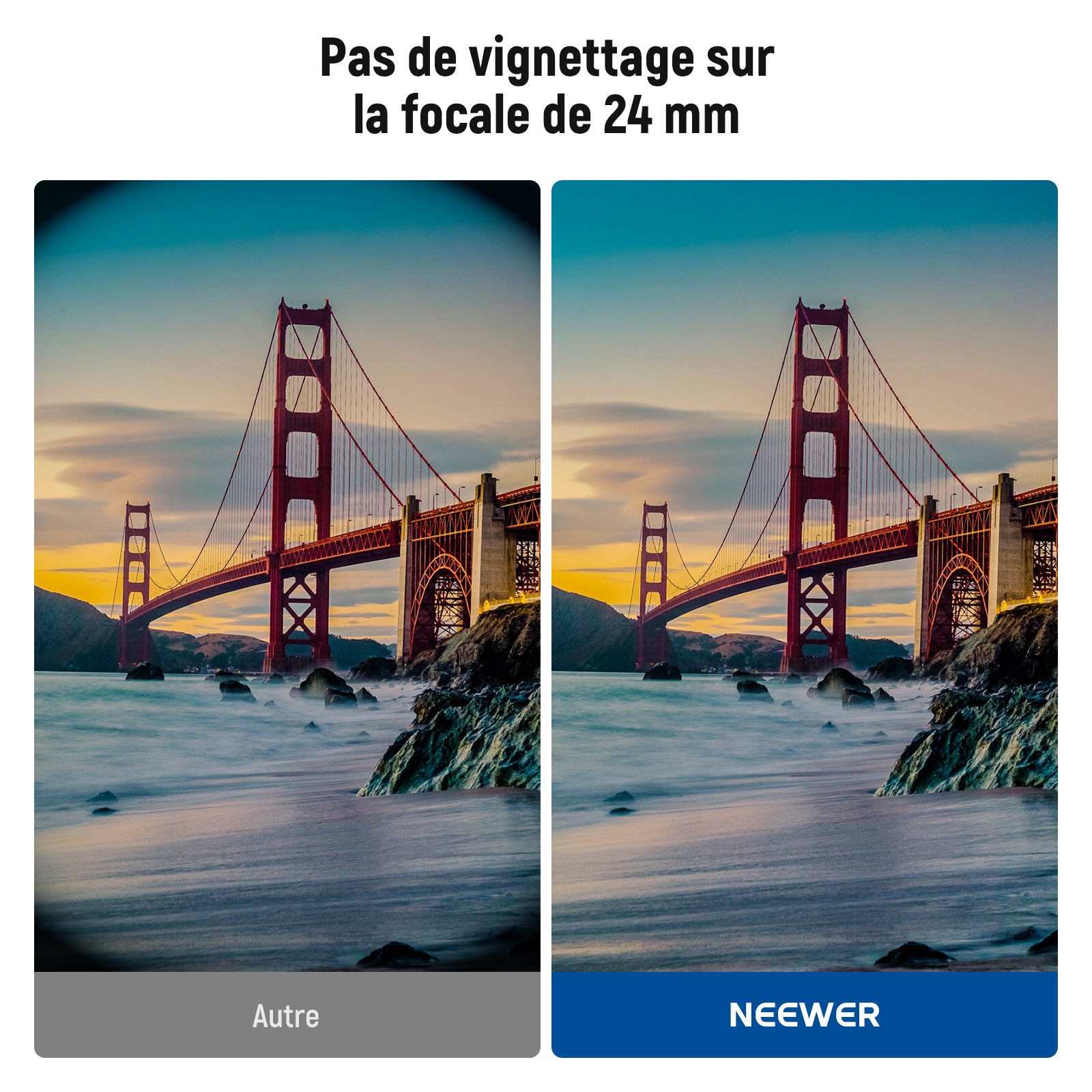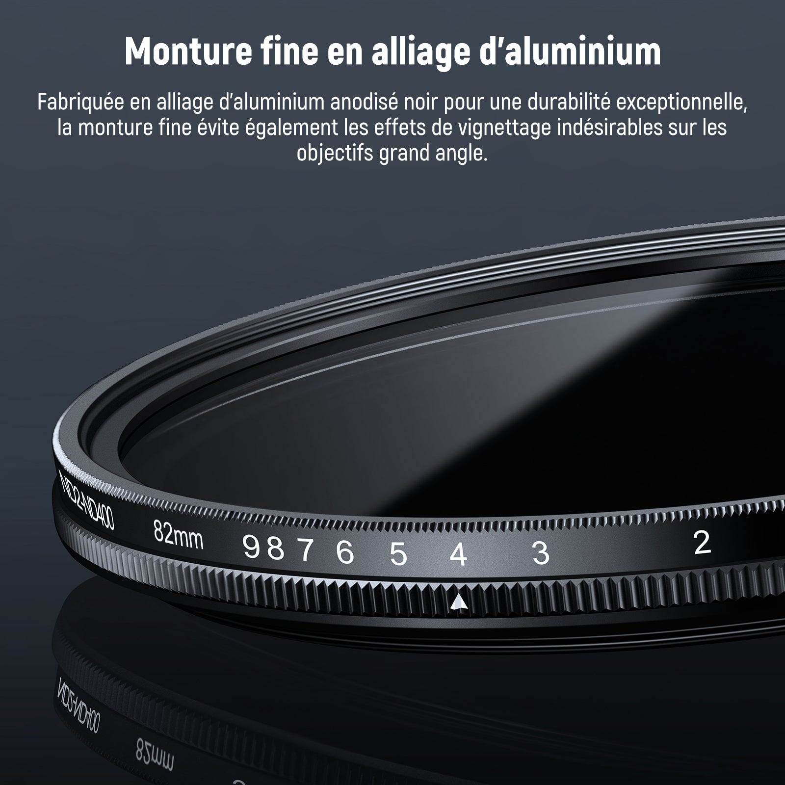 • 【Cadre ultra-fin moleté】 Le cadre fin en alliage d'aluminium empêche le vignettage sur les objectifs grand angle, tandis que le moletage usiné CNC assure une installation et un retrait en douceur. Compatible uniquement avec les objectifs dotés d'un filetage de filtre de 82 mm et de bouchons/parasoleils de 86 mm.