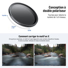 • 【Réduction flexible de la lumière】 Ce filtre ND2-400 variable réduit la lumière de 1 à 9 diaphragmes. Il évite la surexposition dans diverses conditions météorologiques et permet de capturer des effets de flou de mouvement grâce à des vitesses d'obturation lentes et de grandes ouvertures. Il suffit de faire pivoter le cadre pour obtenir des repères précis et un contrôle précis de l'exposition.