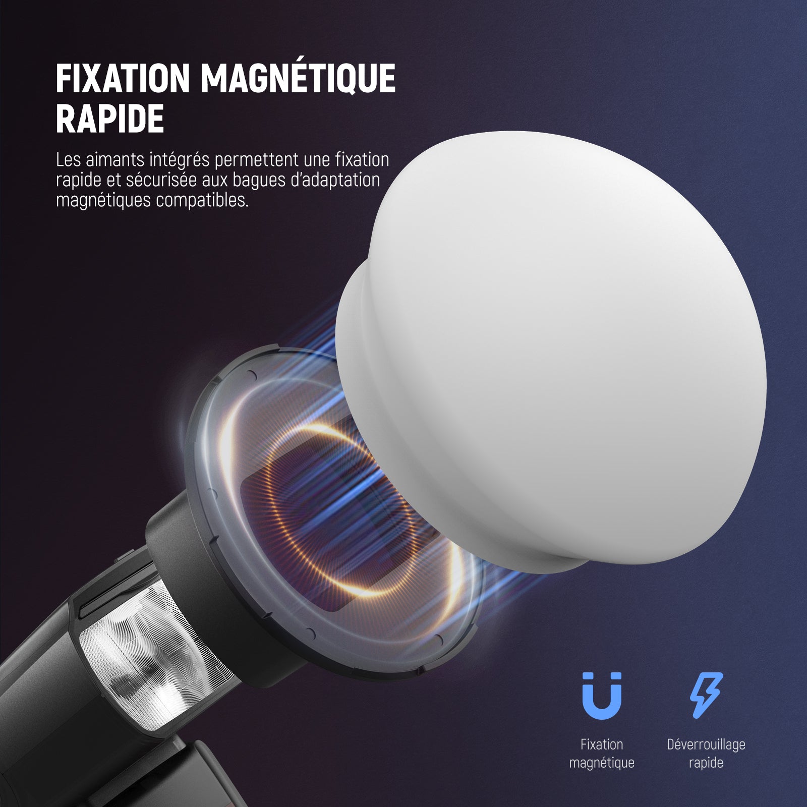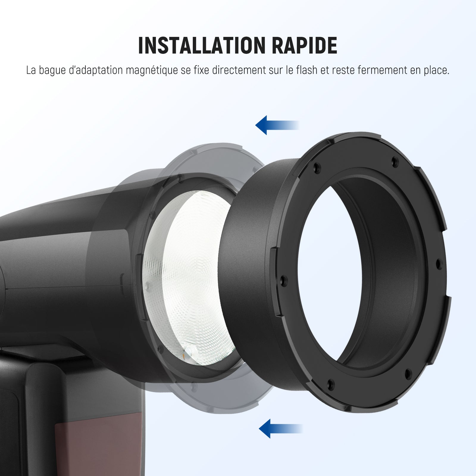 - 【Fixation rapide à clipser】l'anneau adaptateur magnétique se fixe directement sur le flash et reste bien en place