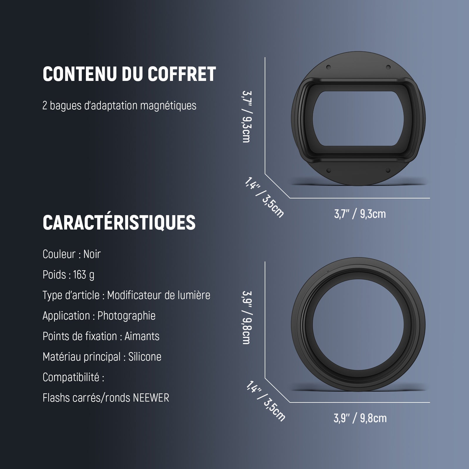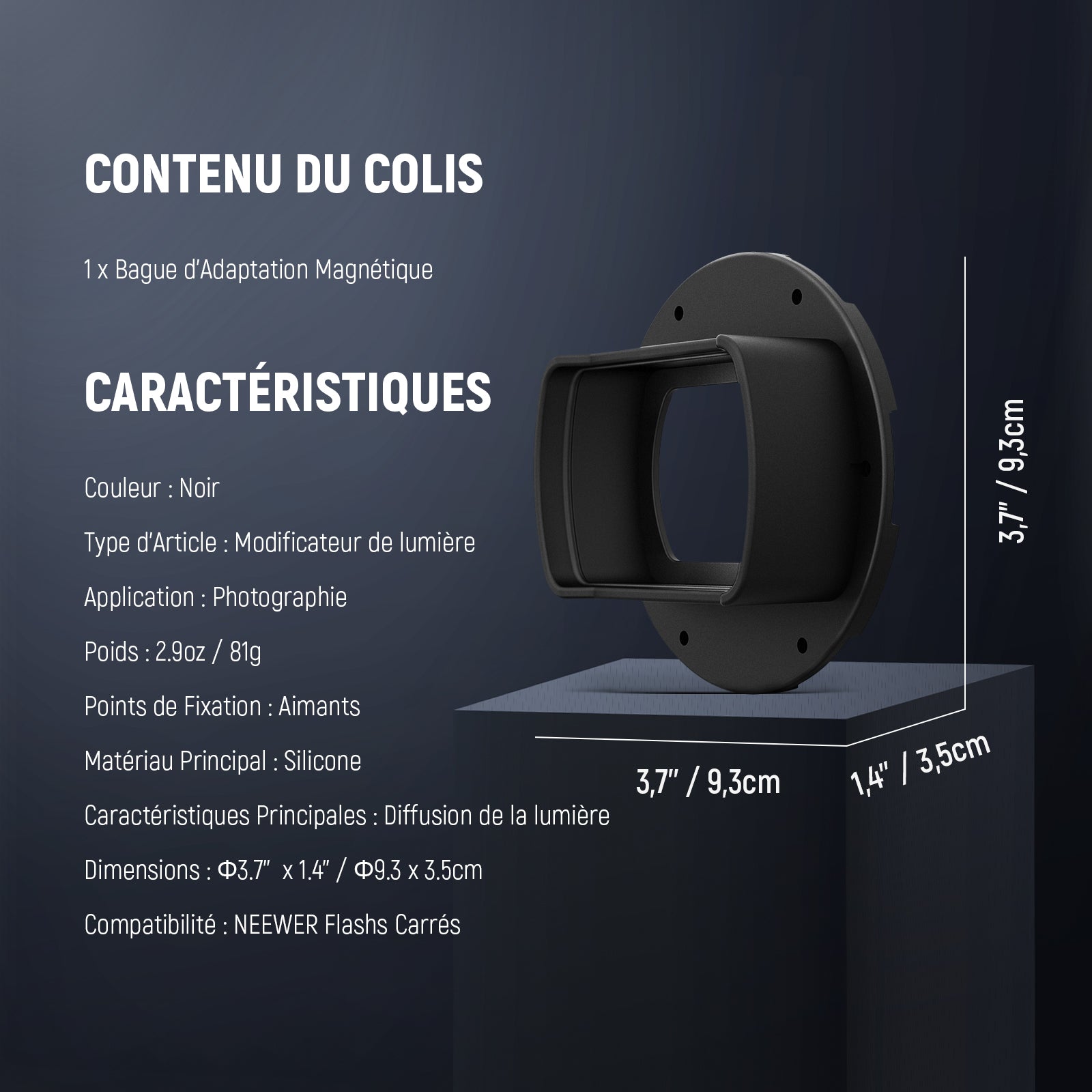 - 【Bague d'adaptation flash carrée】cette bague d'adaptation magnétique combine une variété d'accessoires de flash avec les flashs à tête carrée de NEEWER pour la photographie créative, artistique et professionnelle - L'équipement indispensable pour les créateurs de contenu et les influenceurs