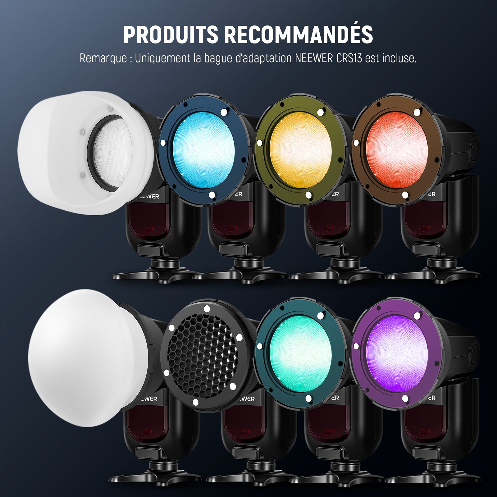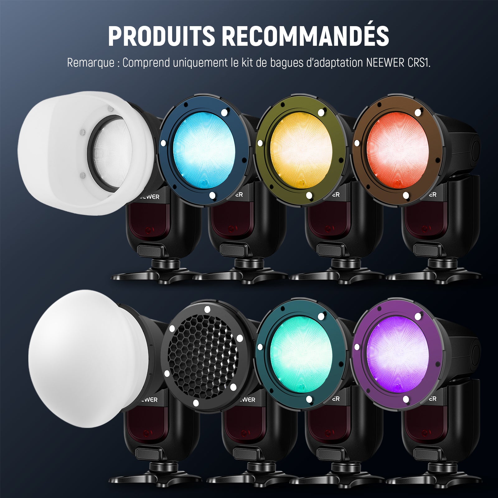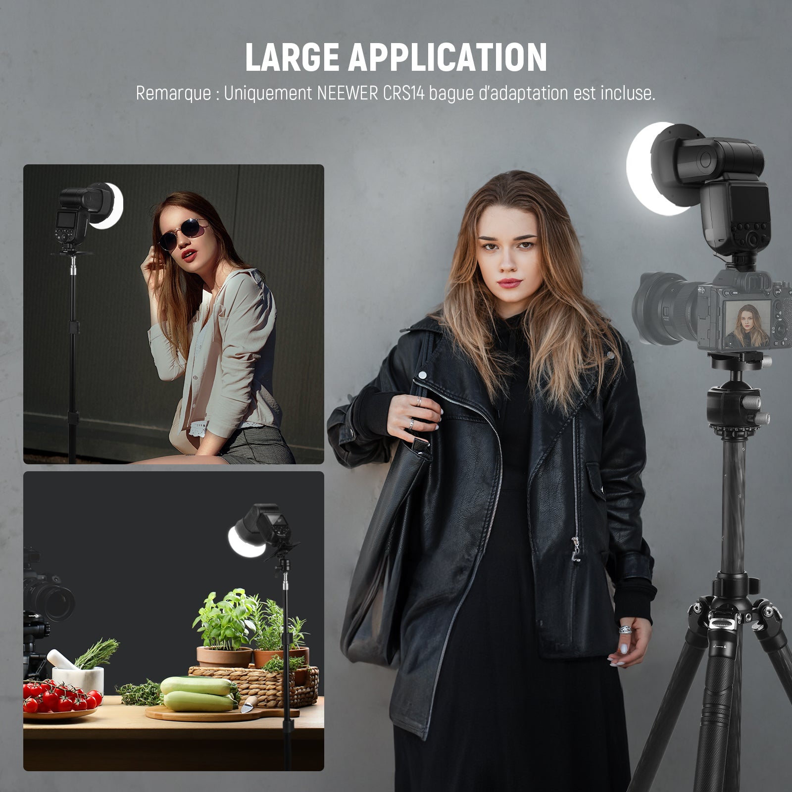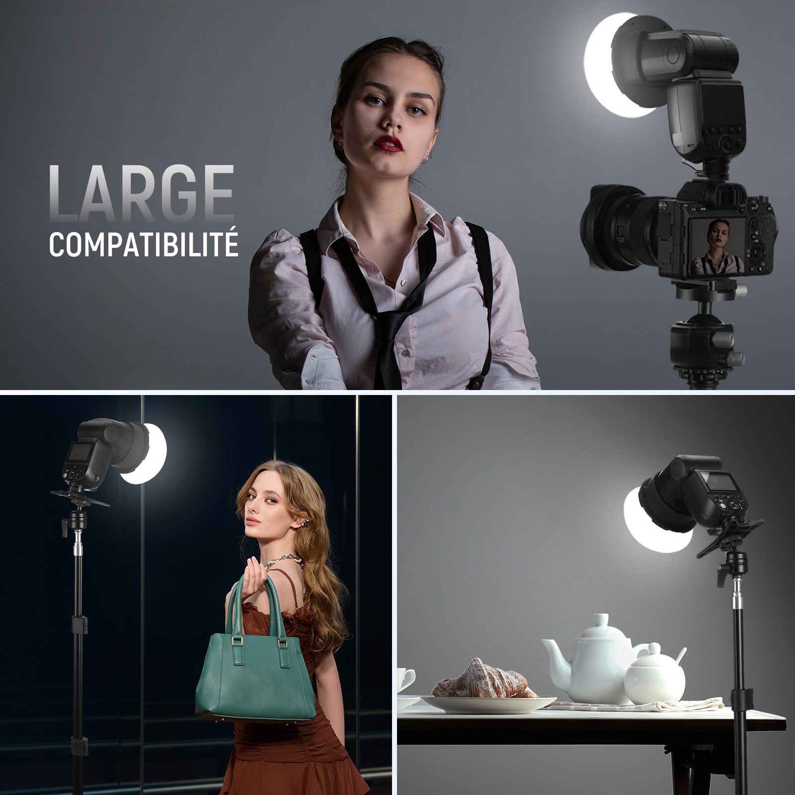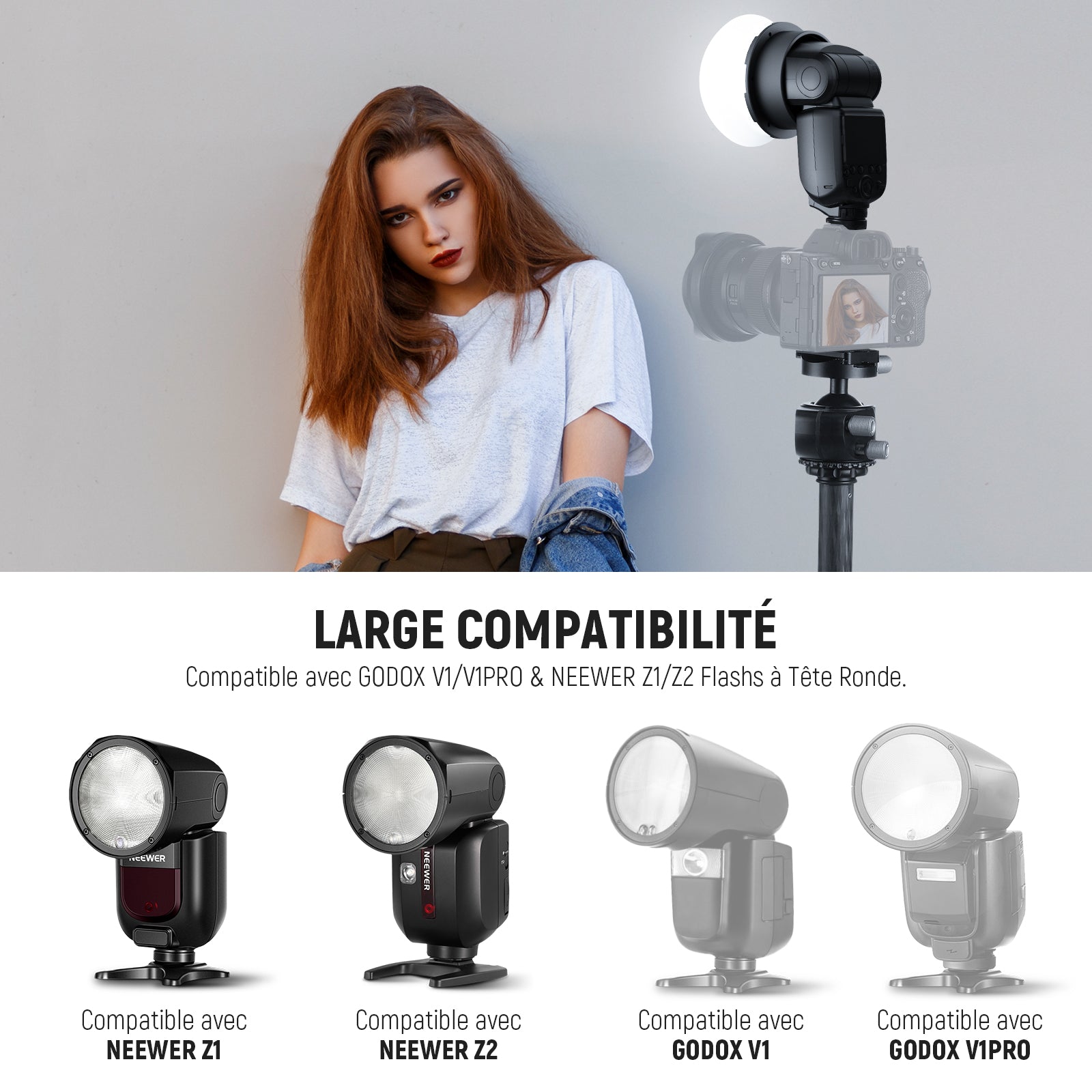 - 【Compatibilité des modèles flash】 Convient aux têtes rondes des séries NEEWER Z1 et Z2. Également compatible avec Godox V1/V1 Pro flashs ronds
