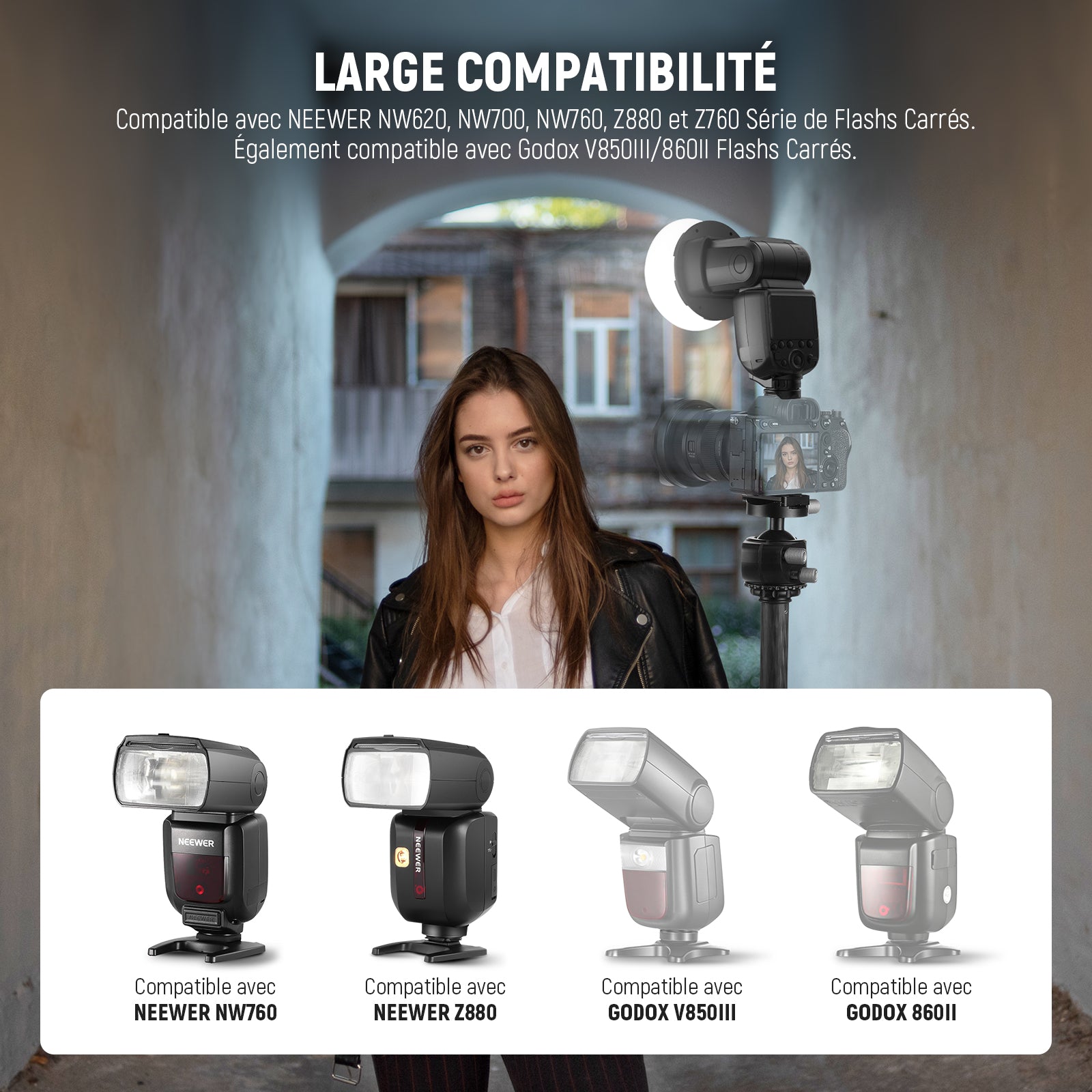 - 【Compatibilité des modèles de flash】convient pour les flashs NEEWER NW620, NW700, NW760, Z880, Z760. Également compatible avec Godox V850III/860II flashs carrés