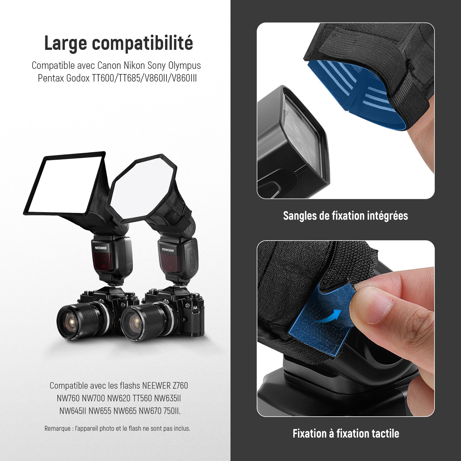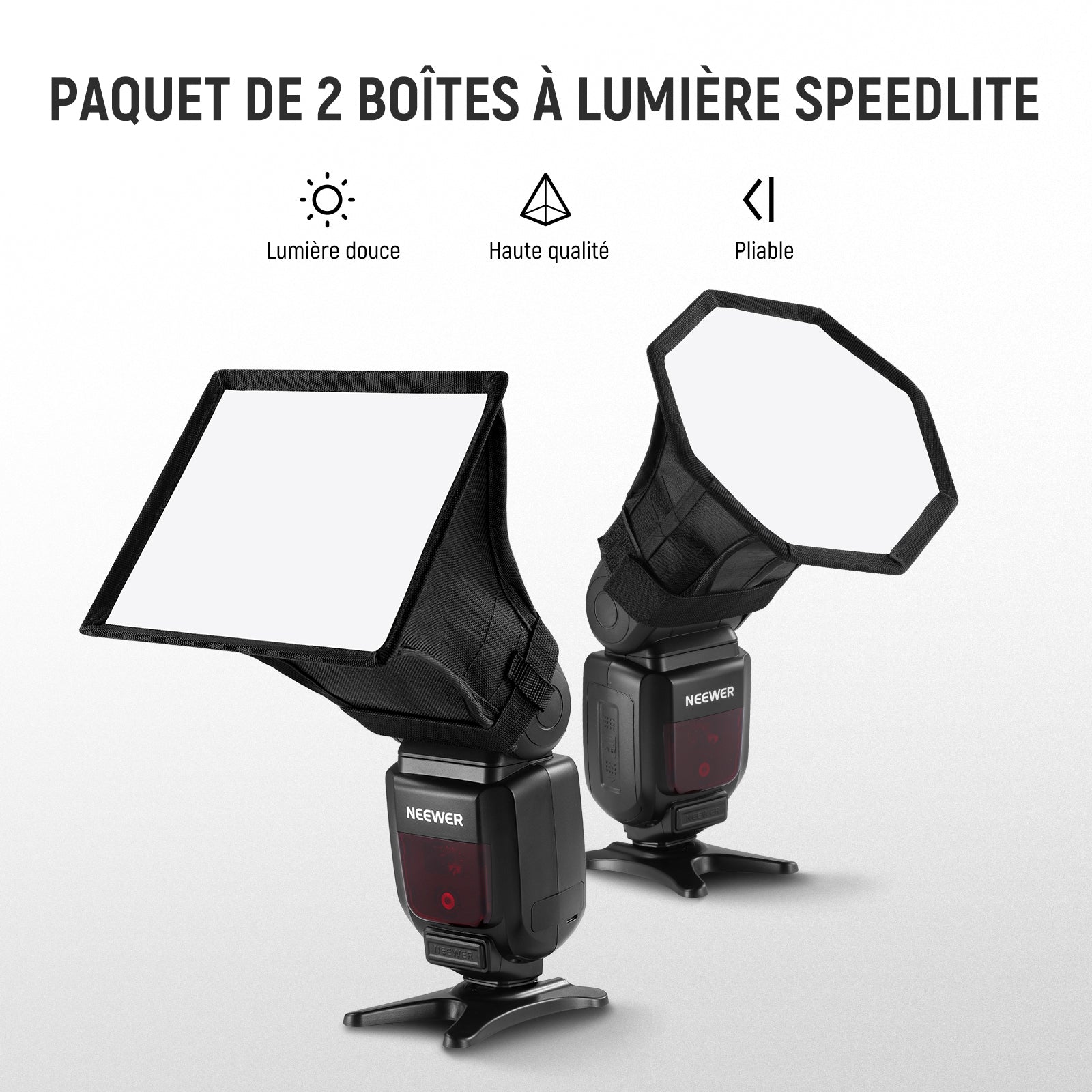 - 【Boîtes à lumière Flash améliorées avec une compatibilité plus large 】 comprend une boîte à lumière rectangulaire de 6 "x 5" (15 x 12,5cm) et une boîte à lumière octogonale de 6 (15cm) pour des effets d'éclairage polyvalents. La conception améliorée étend sa compatibilité avec NEEWER Z1 Z2, et compatible avec Godox TT600 TT685 V860II V860III V1 Canon Nikon Sony NEEWER Z760 NW700 NW620 TT560 NW635II NW645II NW655 NW665 NW670 750II flashs à tête carrée