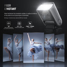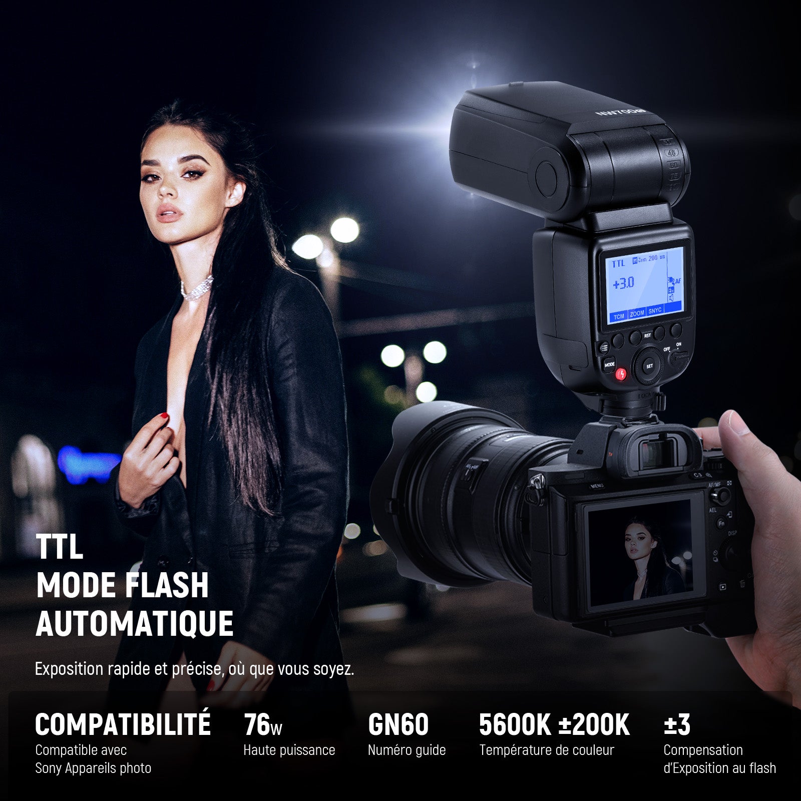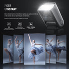 Multiples modes flash fournis - Le flash permet un contrôle flexible avec les modes TTL, Manuel et Multi flash ainsi que le contrôle optique S1/S2. En mode M, ajustez facilement la sortie du flash de 1/1 à 1/256 par incréments de 0,1. En mode Multi, le NW700-N déclenche plusieurs flashs dans un court laps de temps pour capturer plusieurs phases de mouvement sur la même photo. Il peut fonctionner en mode maître ou esclave dans les modes S1/S2 pour obtenir un éclairage flexible dans un rayon de 10 mètres.