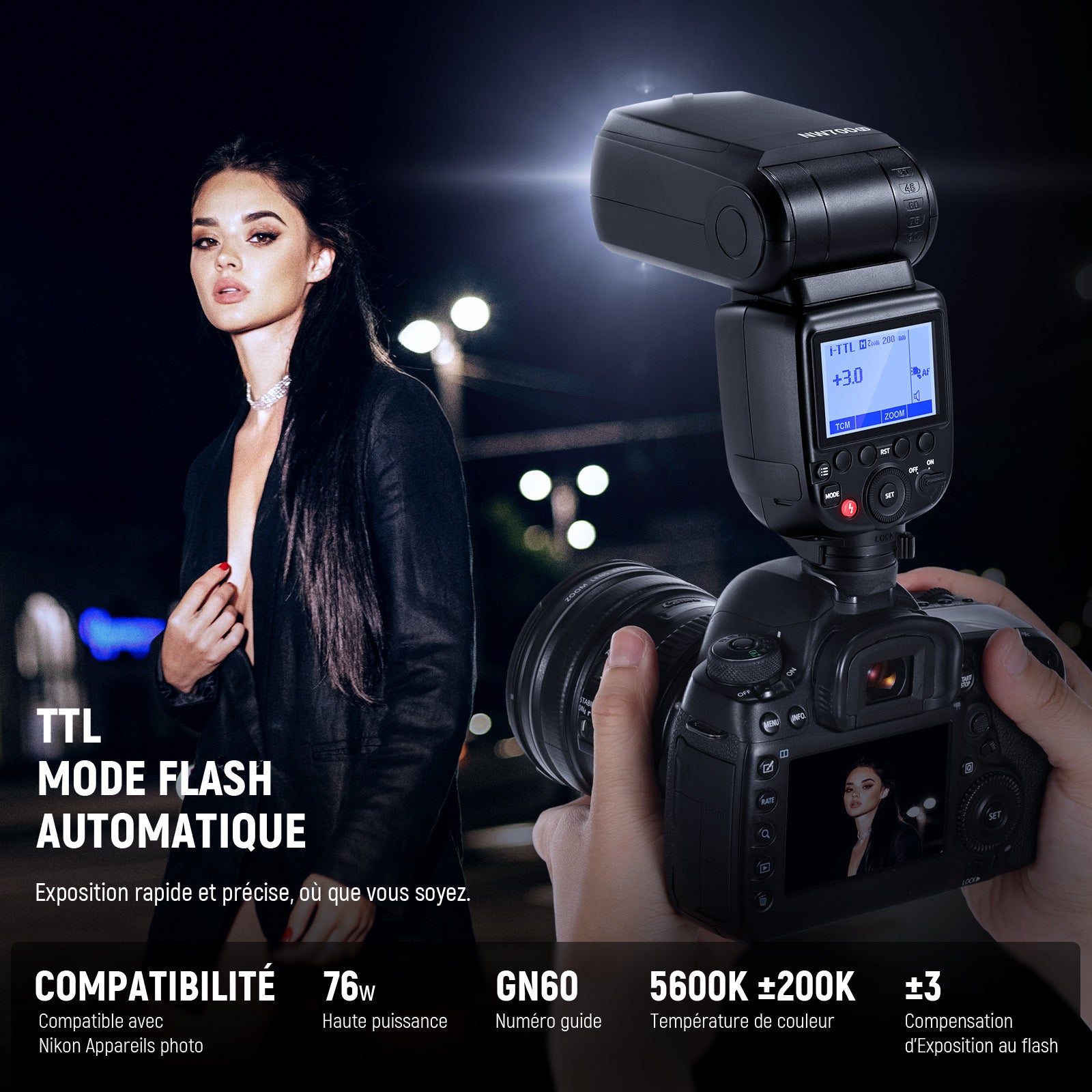 - Flash TTL automatique Speedlite - Compatible avec les appareils photo reflex numériques Nikon, le NW700-N prend en charge pleinement le flash automatique TTL pour faciliter la prise de vue et aider les photographes à capturer des clichés parfaits. Compact et portable, le flash ne pèse que 368 g/13 oz. Utilisez-le pour réaliser facilement une photographie créative avec sa compensation d'exposition au flash de ±3 arrêts, sa synchronisation haute vitesse (HSS) de 1/8000s (pour capturer des objets en mouvement rapide), la synchronisation du rideau avant et arrière, et bien plus encore.