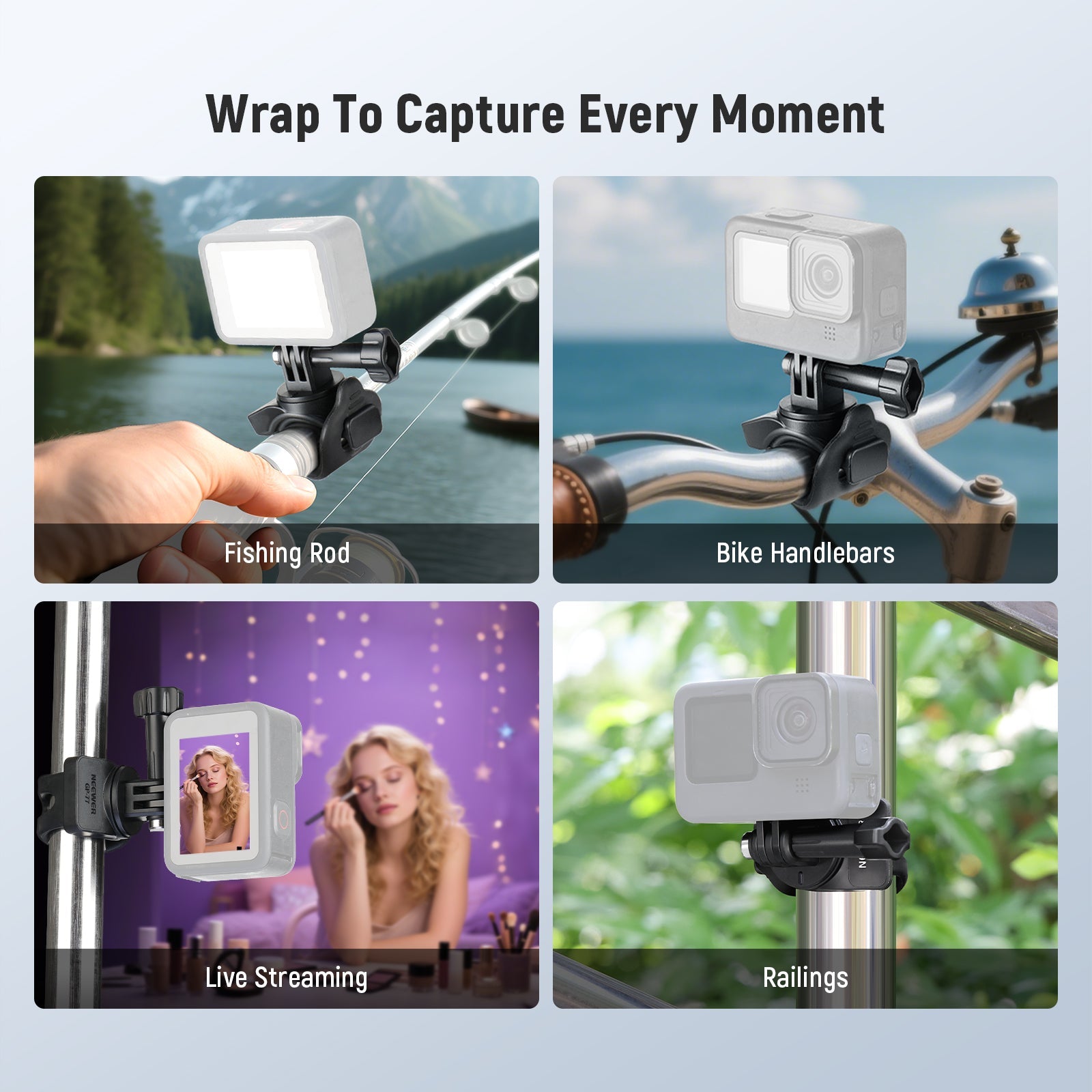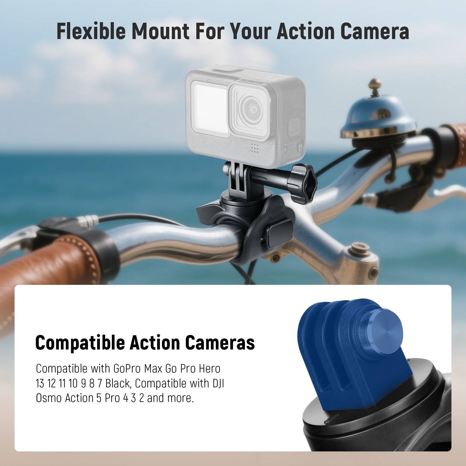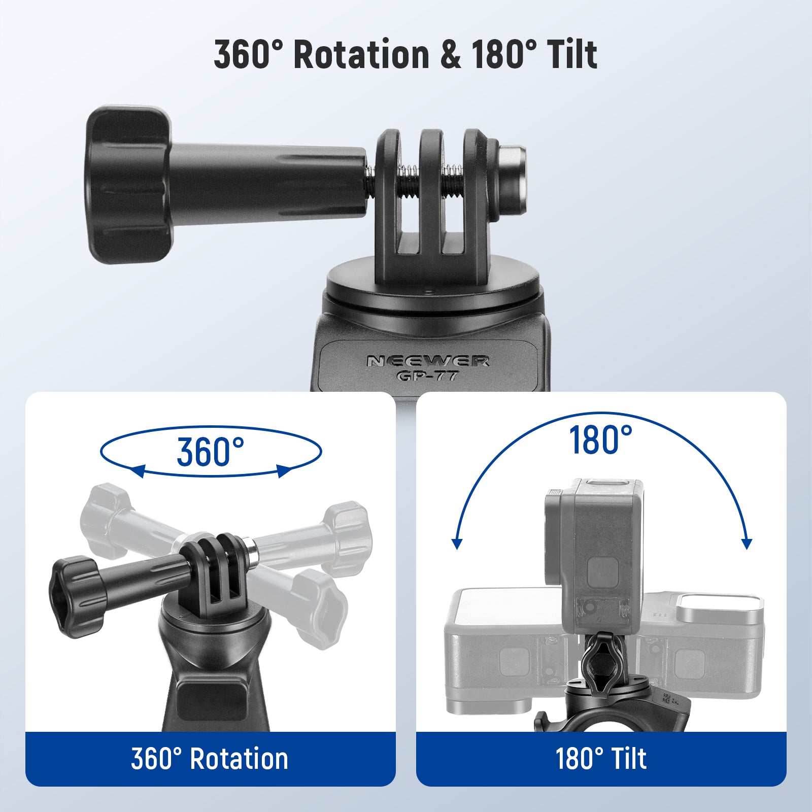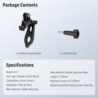 • 360< Rotation & 180< Tilt- The strap mount enables 360< rotation and 180< tilt using the locking screw, ensuring your action camera is securely positioned for flexible angles, and enhancing the shooting experience