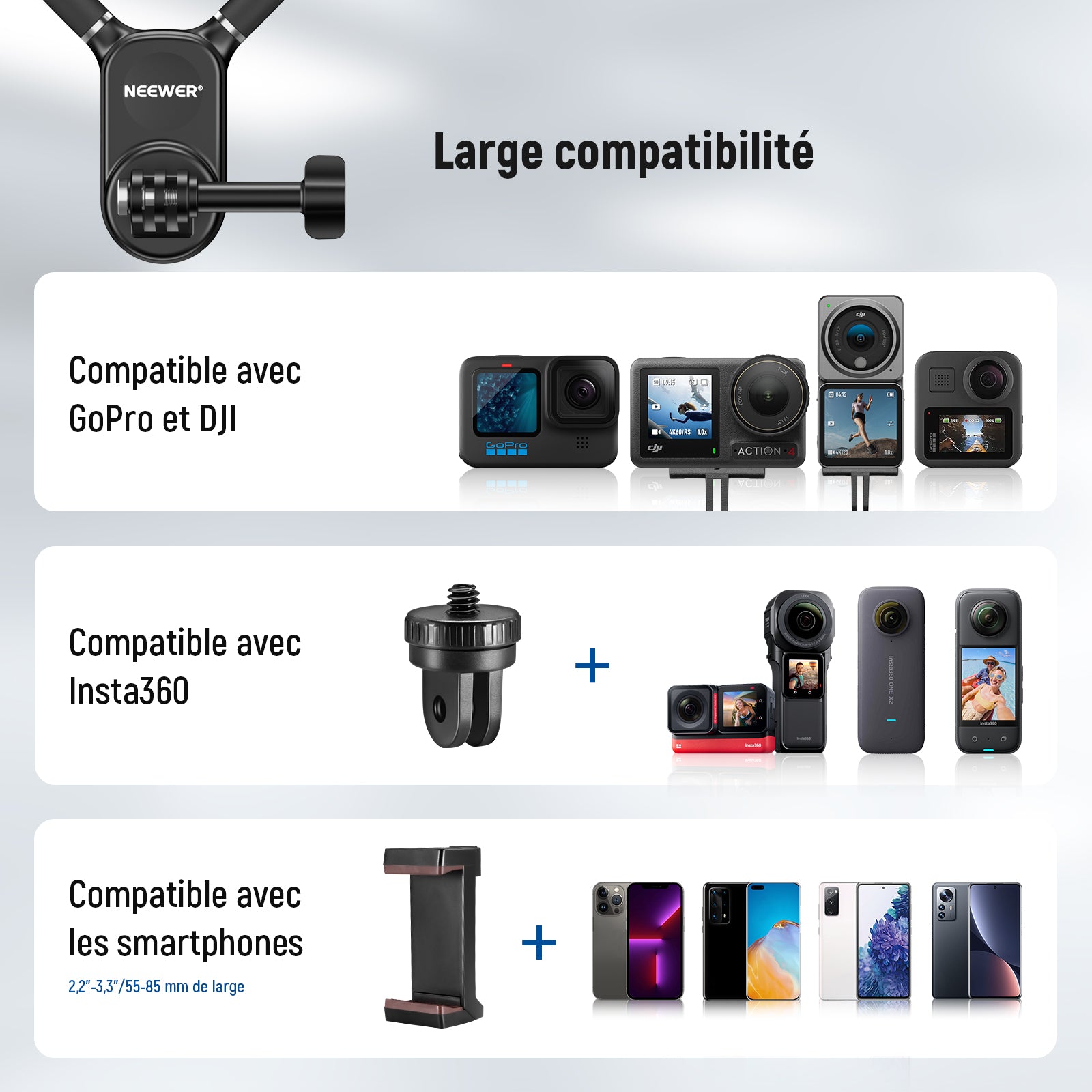 - Large compatibilité et support de téléphone inclus- le kit d'accessoires de photographie mains libres GP15 comprend un adaptateur de support de caméra d'action compatible avec GoPro Hero 13 12 Go Pro Hero 11 10 Black Max Insta360 Ace Pro Insta 360 X3 x4 Go3 DJI Osmo Action 4 3 2 compatible avec AKASO brave 4, etc. Un support de téléphone réglable de 5,5 à 8,5 cm est compatible avec iPhone 16 15 14 13 Pro Max Samsung Galaxy S24 S23 S22 Ultra Huawei Pixel 8 7 Pro, et d'autres smartphones