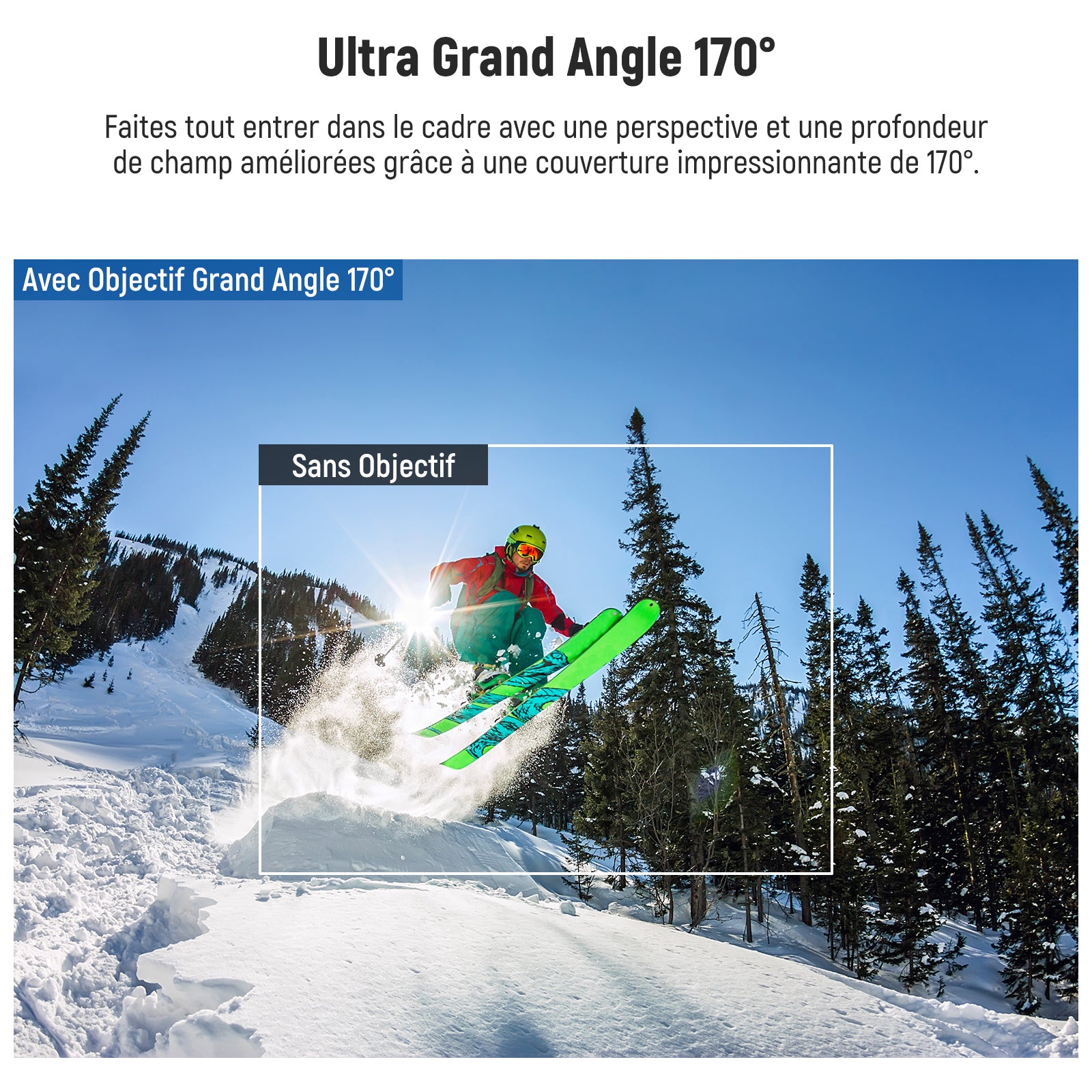 - 【Ultra Grand Angle 170°】 Saisissez tout le cadrage grâce à un angle de vue exceptionnel de 170°. Notre objectif vous permet de capturer plus de scènes dans vos photos et de réaliser des chefs-d'œuvre époustouflants avec une perspective améliorée et une meilleure profondeur de champ. Il est aussi utilisé de manière créative pour exagérer ou souligner la différence de taille ou la distance entre les objets au premier plan et à l'arrière-plan pour des images impressionnantes.