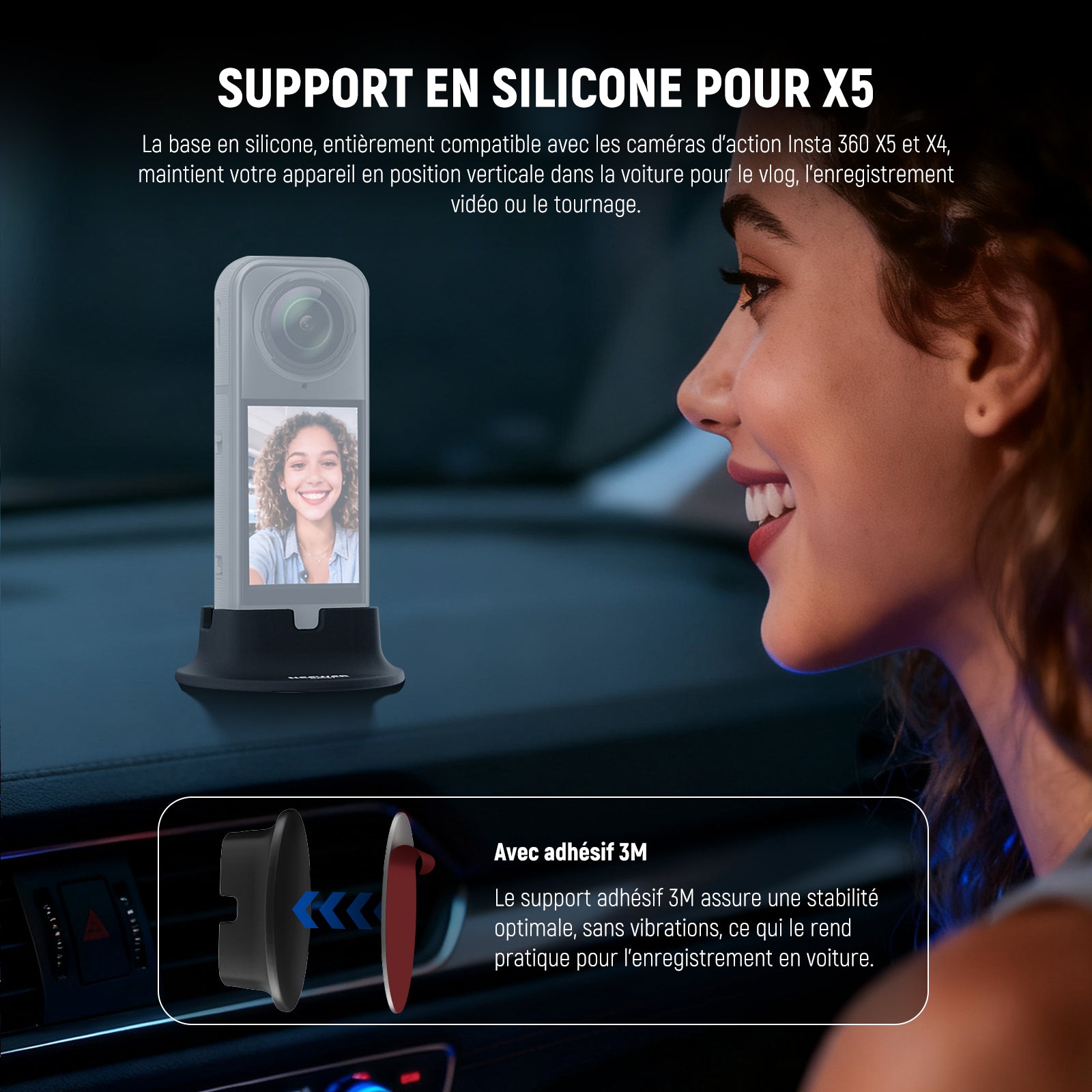- 【Conception en silicone et anti-rayures】 Le support voiture X5 est doté d'une base plus large pour un positionnement stable de la caméra. Fabriqué en silicone, il protège votre appareil des rayures et est facile à nettoyer.
