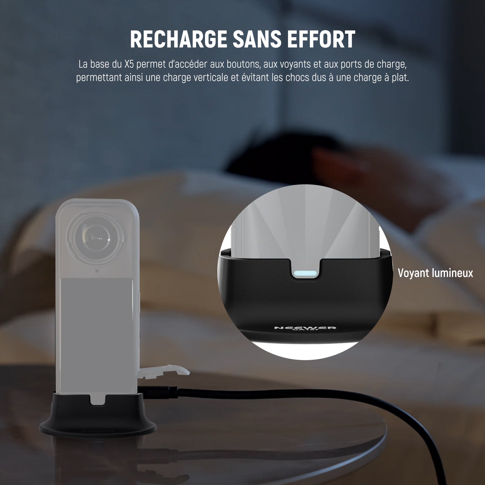 - 【Chargement sans effort】 La base X5 permet un accès facile aux boutons, aux voyants et aux ports de charge après l'installation, permettant une charge verticale et évitant les chocs dus à une charge à plat