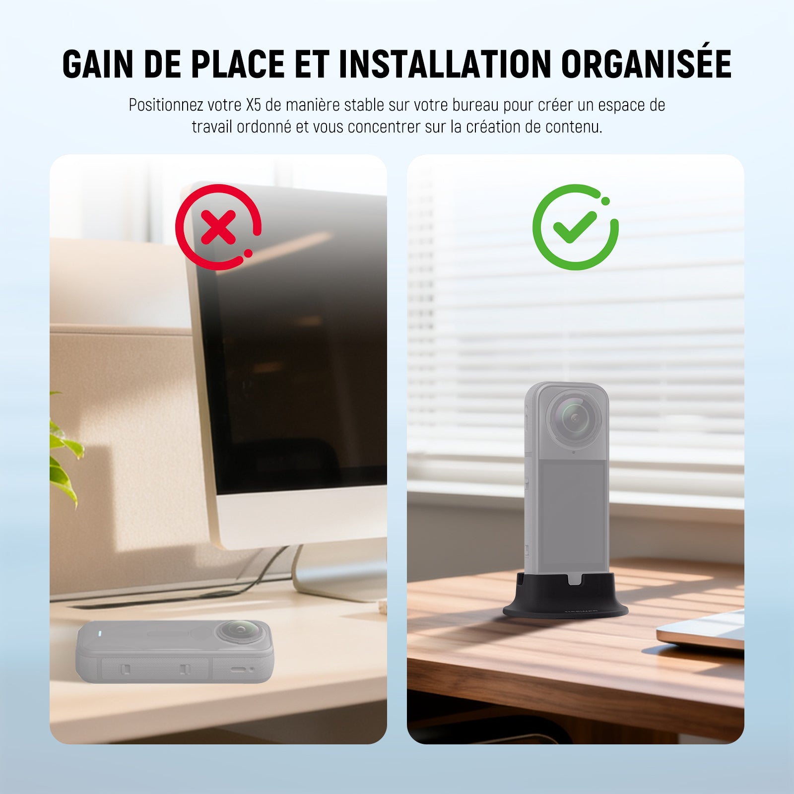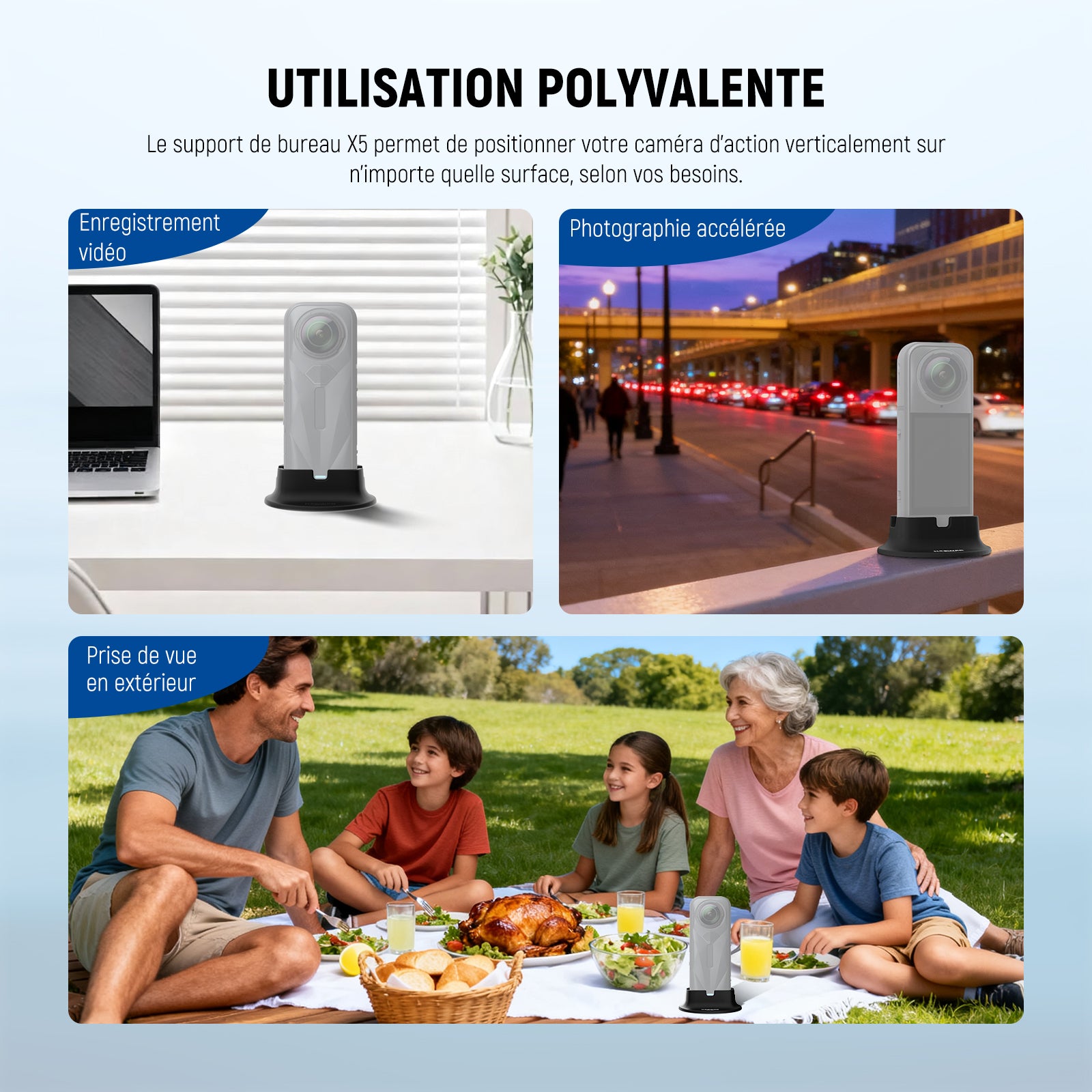 - 【Utilisation polyvalente】 Le support de bureau X5 positionne votre caméra d'action à la verticale sur n'importe quelle surface, idéal pour les prises de vue sur place ou la photographie en accéléré, car les créateurs de contenu et les influenceurs essentiels doivent avoir des accessoires de photographie et des équipements de vidéographie.