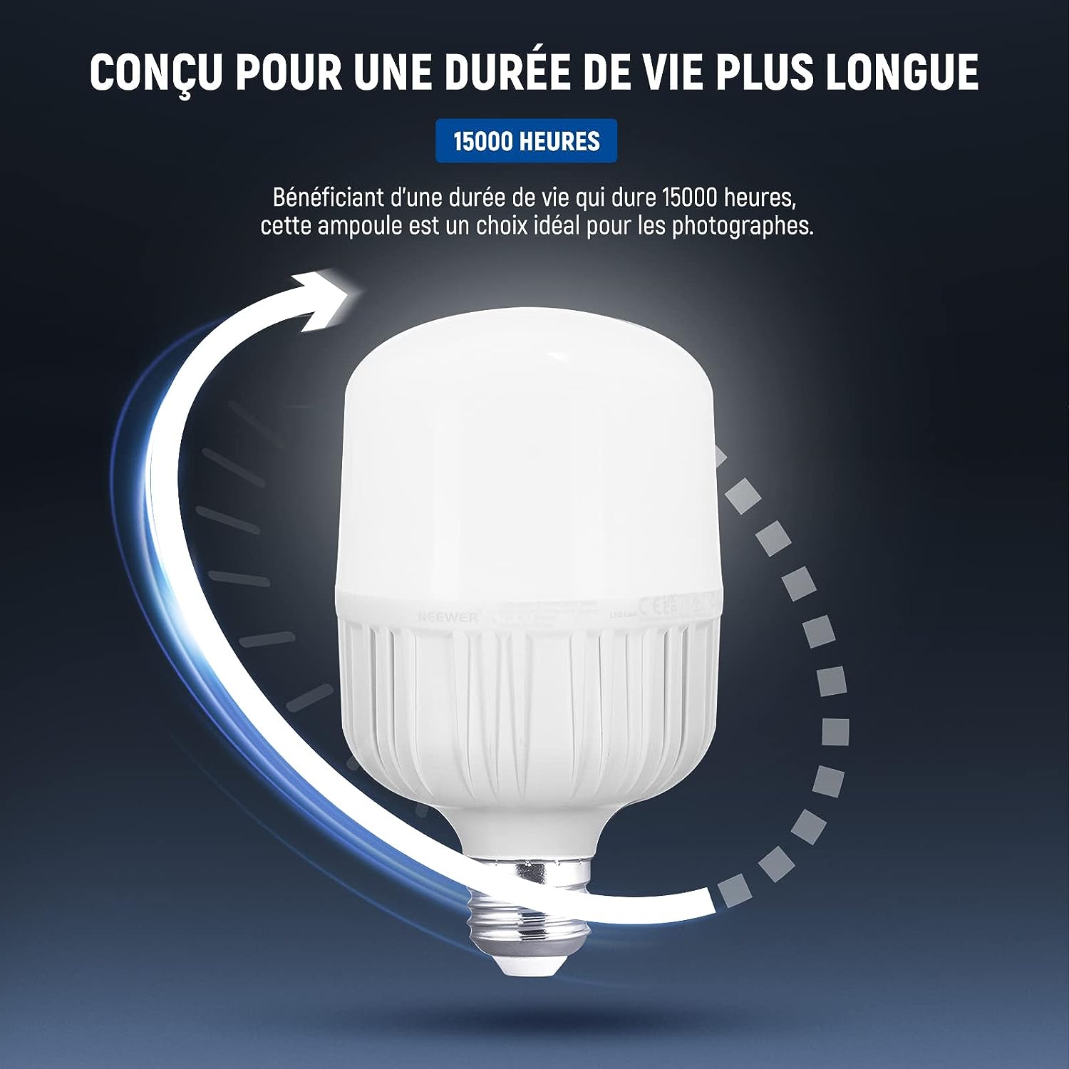 • Construite pour une durée de vie plus longue- Bénéficiant d'une durée de vie de 15000 heures, cette ampoule est un choix idéal pour les photographes, les cinéastes et les créateurs de vidéos ayant divers besoins créatifs