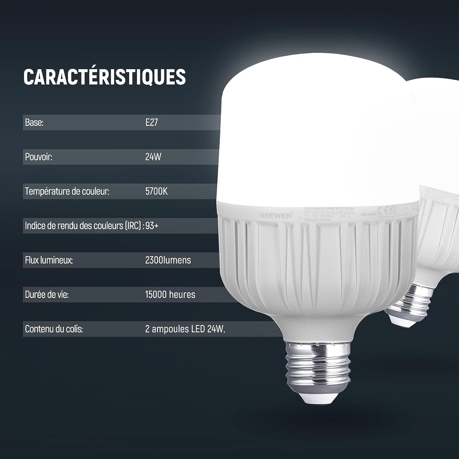 NEEWER T80 2 paquets d'ampoules LED E27 24W