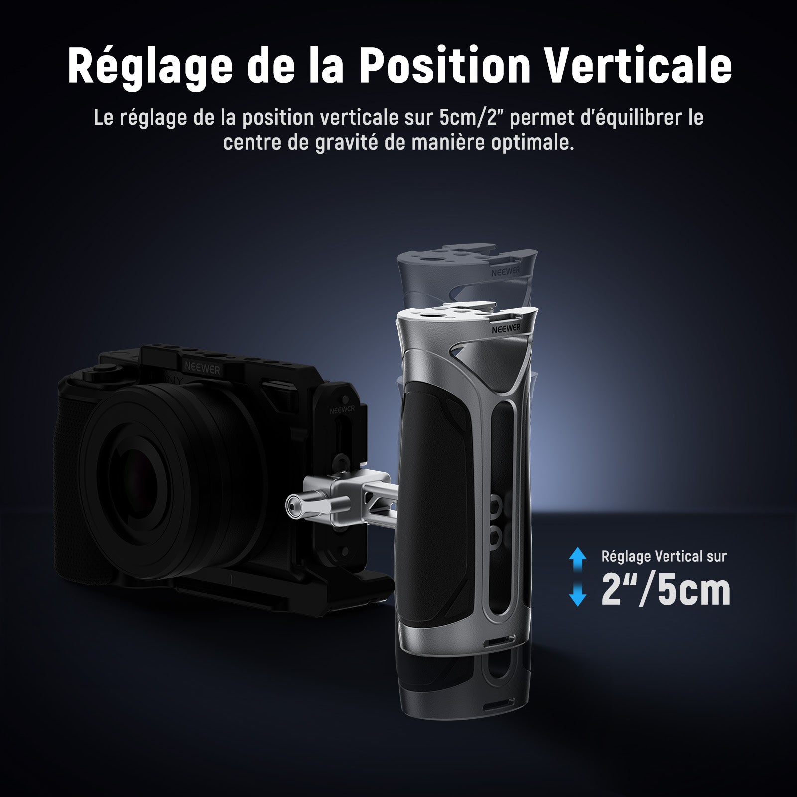 - 【Réglage Vertical sur 5cm/2"】 Le bras de connexion est réglable verticalement sur 5cm/2" pour équilibrer le centre de gravité et peut être installé dans les deux sens pour convenir aux gauchers et aux droitiers. Une clé hexagonale logée à l'intérieur de la poignée permet de serrer les vis.
