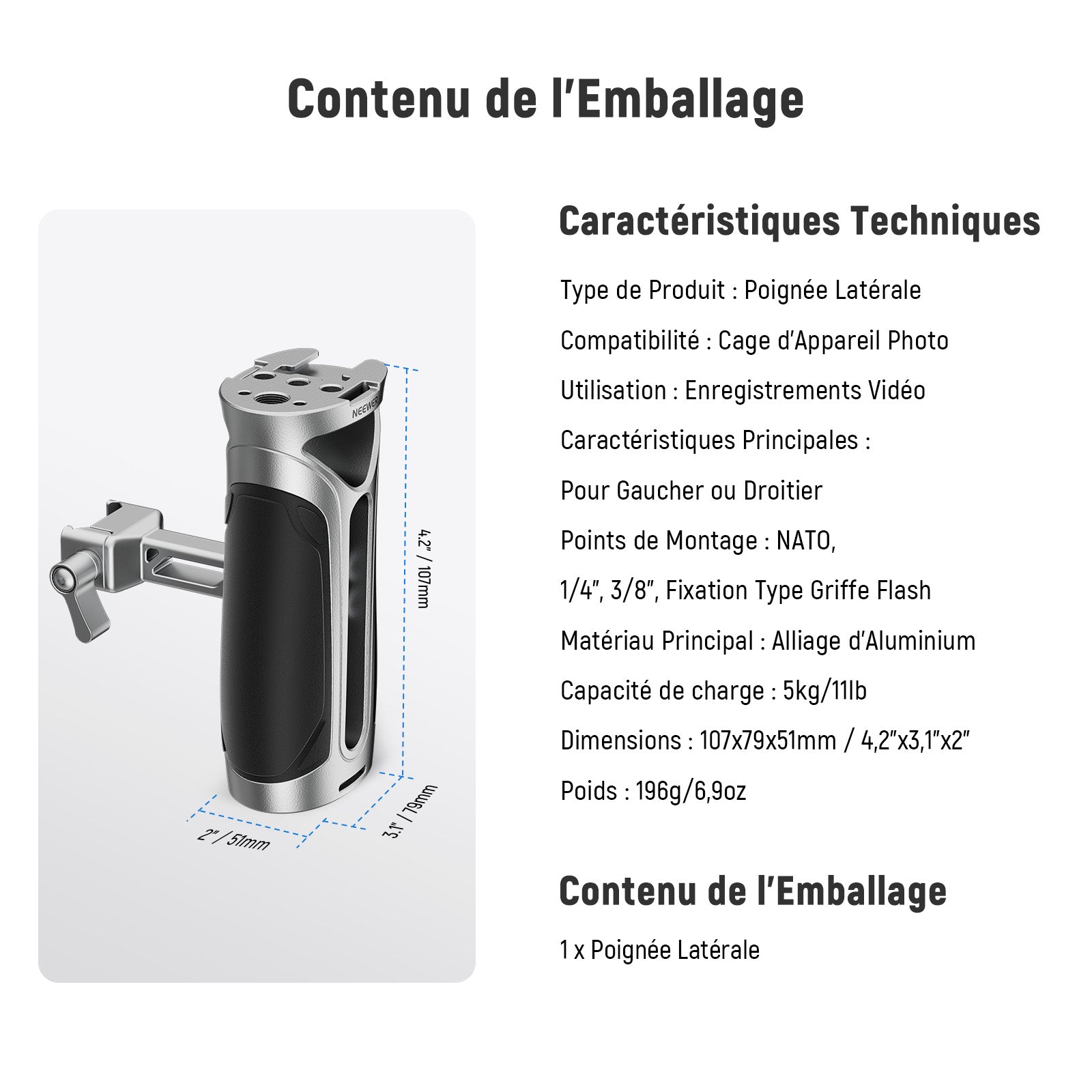 NEEWER CA125 Poignée Latérale avec Pince NATO