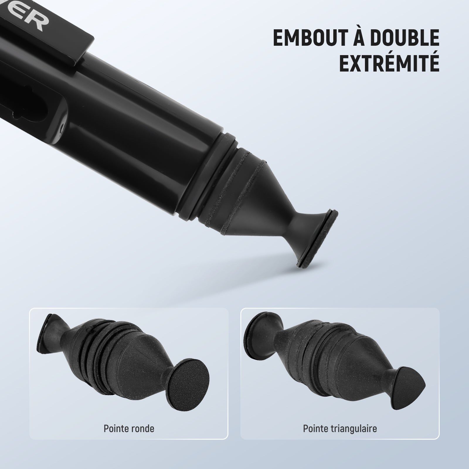 - 【Stylo pinceau double tête】une brosse douce rétractable qui élimine la poussière et une pointe en carbone qui absorbe l'huile, les traces de doigts et les taches. Idéal pour nettoyer les objectifs, les boîtiers d'appareil photo, les claviers et autres appareils.