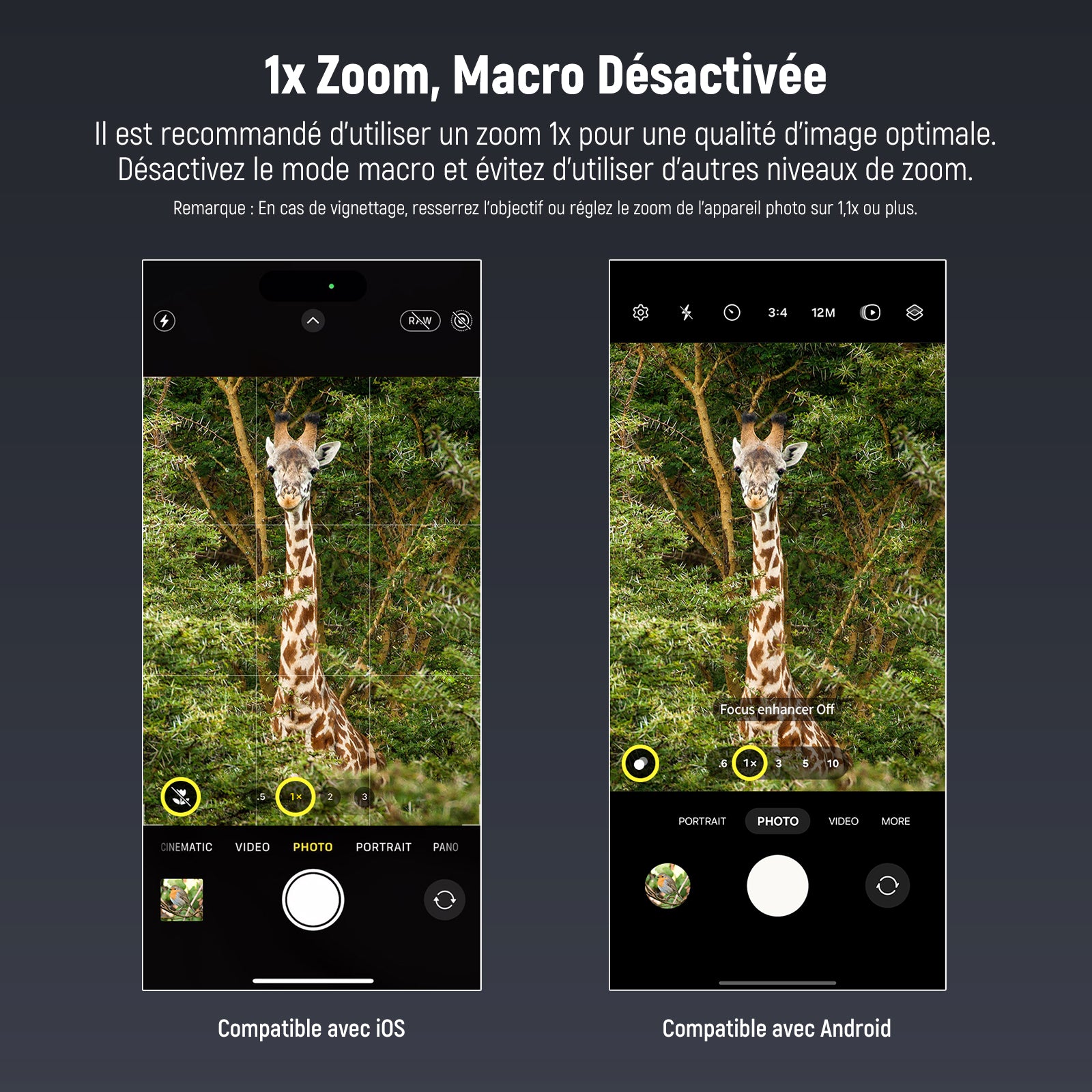 • 【Pourquoi avez-vous besoin de cet objectif】alors que la plupart des smartphones offrent un zoom numérique, il réduit la qualité d'image en recadrant l'image. En revanche, un zoom optique grossit le sujet sans sacrifier la clarté. À la bonne distance, il garde votre sujet clair et authentique tout en ajoutant un arrière-plan naturellement flou