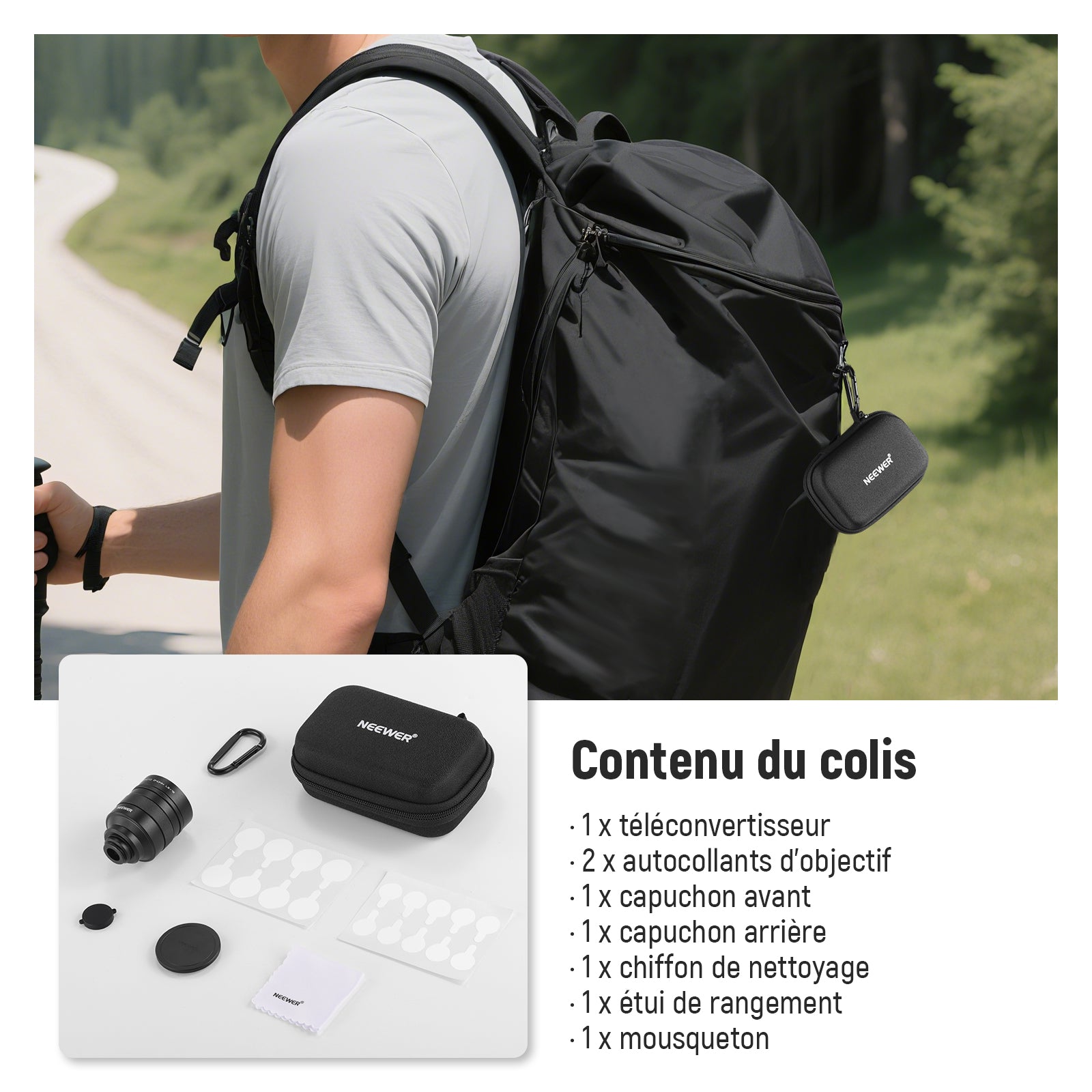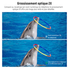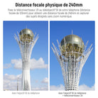 - Convertisseur téléobjectif 2x : conçu pour les smartphones avec un téléobjectif intégré 5x, ce convertisseur double la capacité de zoom optique, transformant un objectif 5x (équivalent à 120 mm) en un puissant zoom 10x (équivalent à 240 mm). Il permet de prendre des photos à distance sans recadrage numérique ni perte d'image