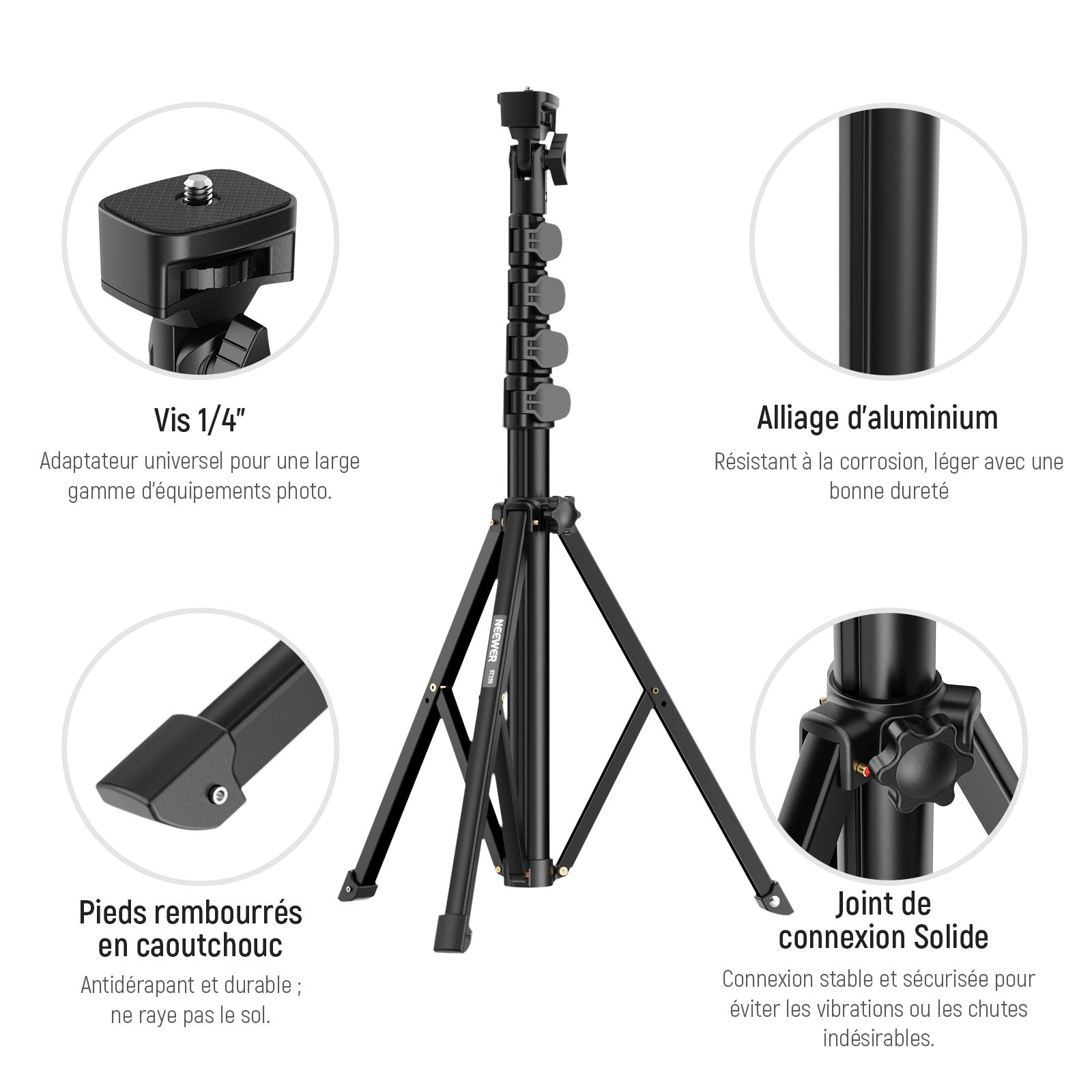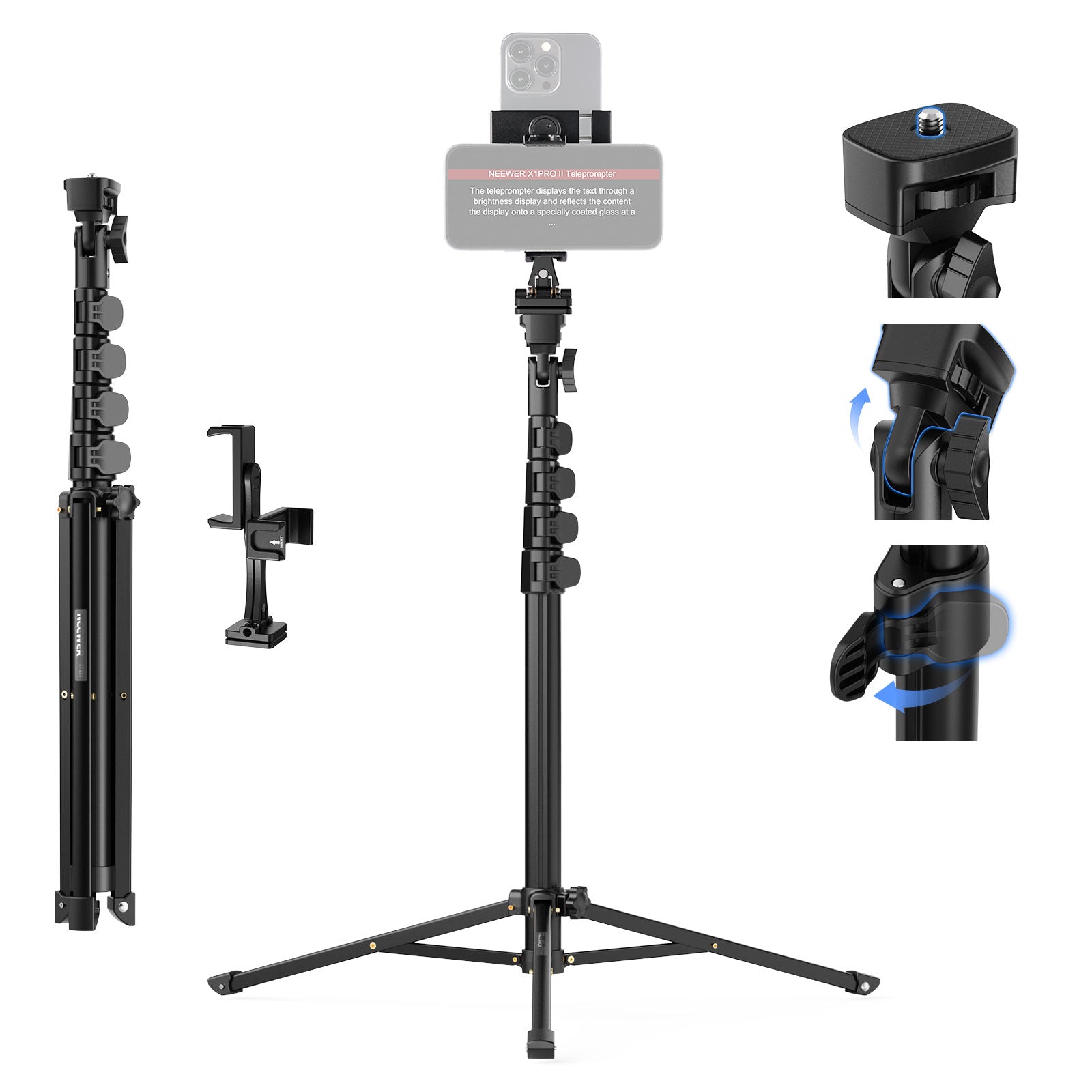 - 【Support en Métal Solide avec Capacité de Charge de 5kg】 Construit en alliage d'aluminium solide et en acier avec une finition anodisée, le trépied pour téléphone ST155 de NEEWER est robuste et résistant à la corrosion avec une stabilité remarquable, il peut soutenir un poids de 5kg. Il supporte sans problème deux téléphones portables, un éclairage LED et un micro. Les jambes du trépied sont toutes munies d'un tampon en caoutchouc pour ne pas glisser et plus de sécurité.