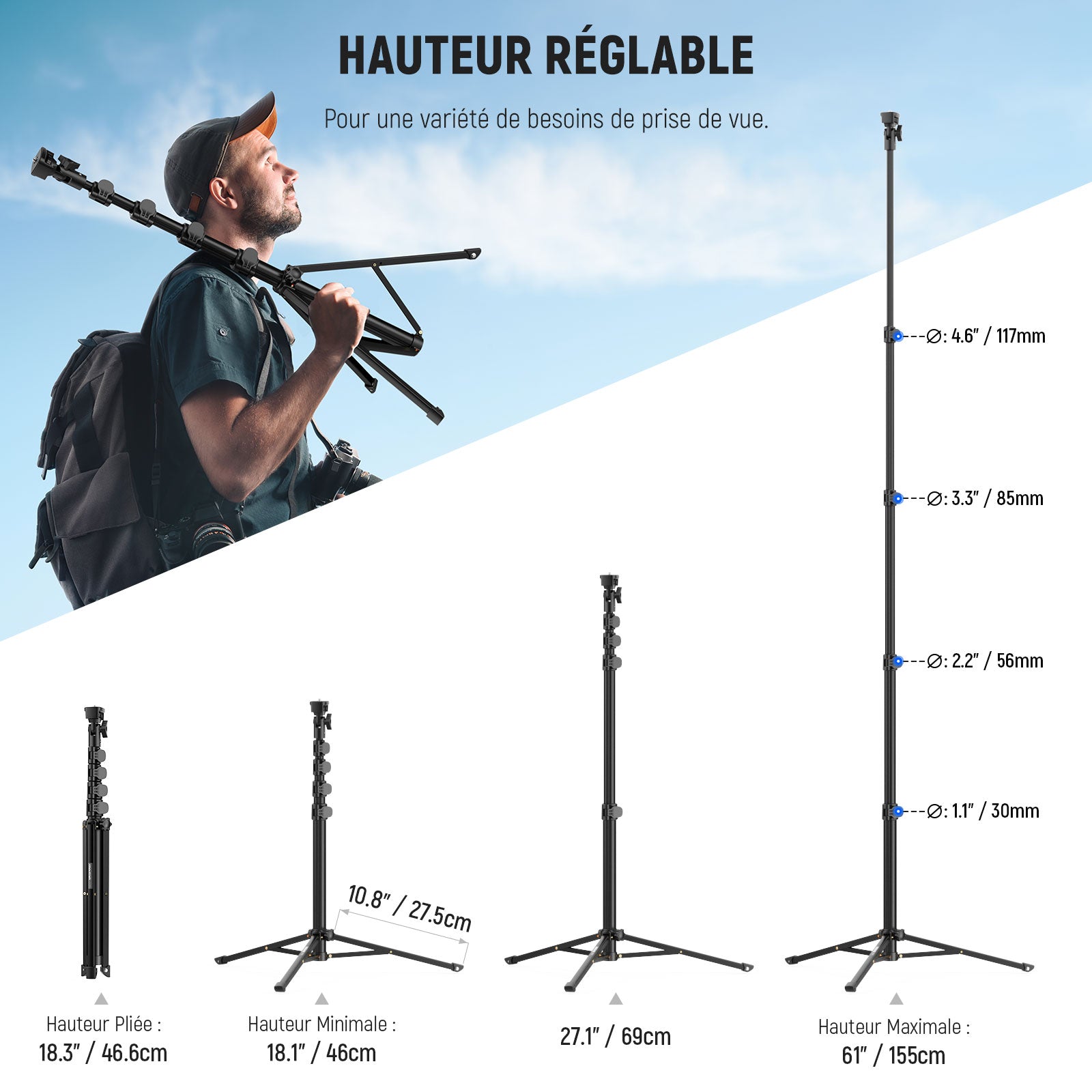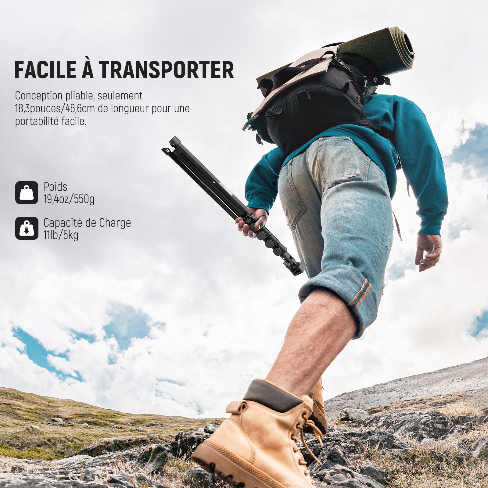 - 【Loquets Rapides & Transport Facile】 Ce trépied photo est facile à déployer et à replier. Il est équipé d'un loquet de verrouillage rapide entre les deux sections pour faciliter le réglage de la hauteur. Conçu pour être facile à utiliser, ce support de téléphone se replie pour ne plus mesurer que 46,6cm de long une fois plié, ceci permet de le ranger et de le transporter facilement. Idéal pour les photographes de voyage et les créateurs travaillant en extérieur.